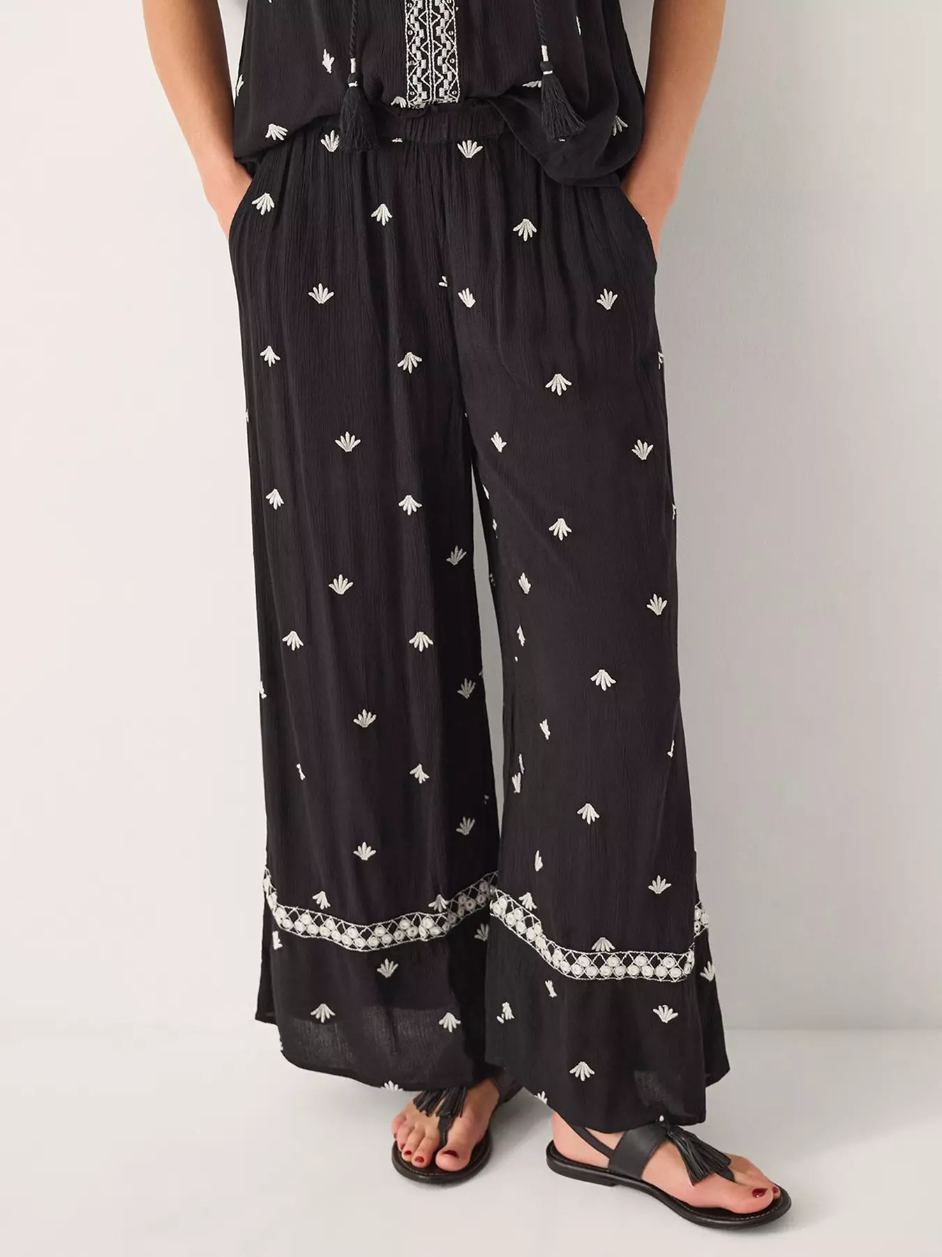 Just add sandals. Embroidered with geometric trims and leaf motifs, these wide leg trousers feature pockets, making them the perfect pick to explore new cities in. Love the look? Slip the matching top into your basket and look forward to your brand new co-ord.- Material Content: Outer: Ecovero Viscose 100%