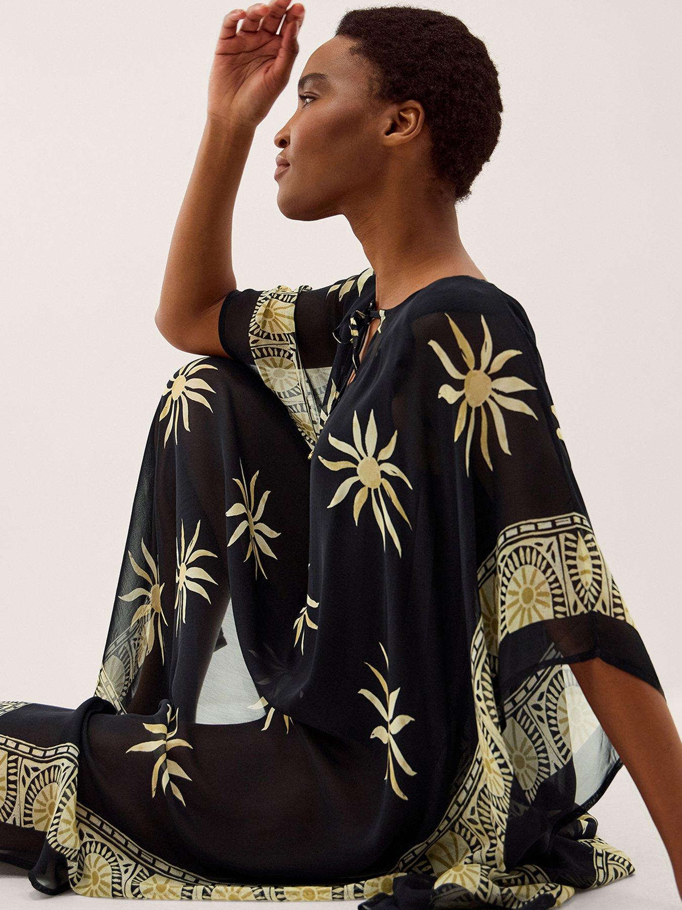 Monsoon Tashie Sun KaftanSunrise to sunset. When the holiday includes poolside lounging and long, relaxing days at the beach, this kaftan is essential. Patterned with sun motifs and a decorative border framing the sleeves and maxi hem, it's finished with beaded tassels in a shade to match golden hour.