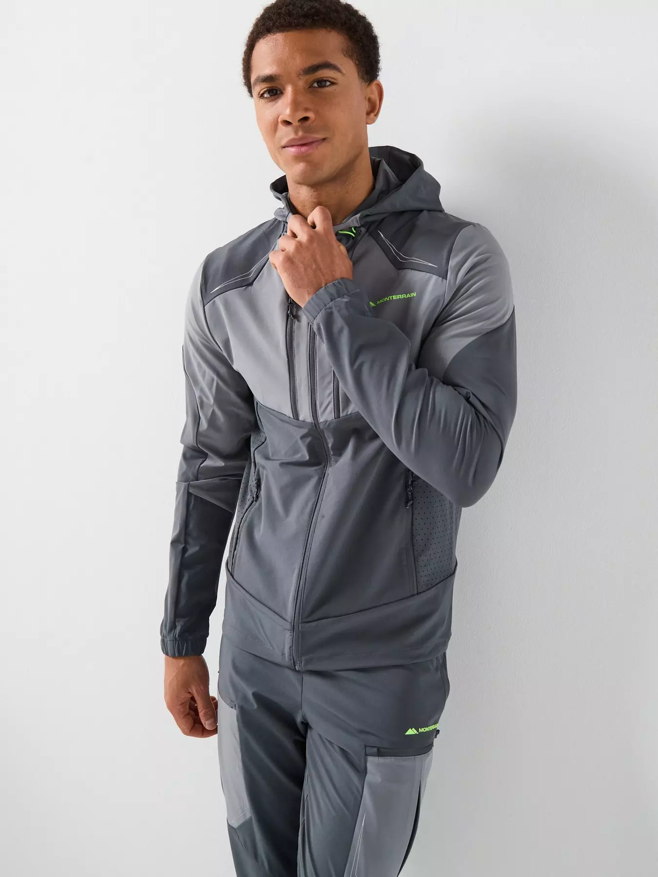 MonterrainMens Orbit Woven Running Hoody - Grey