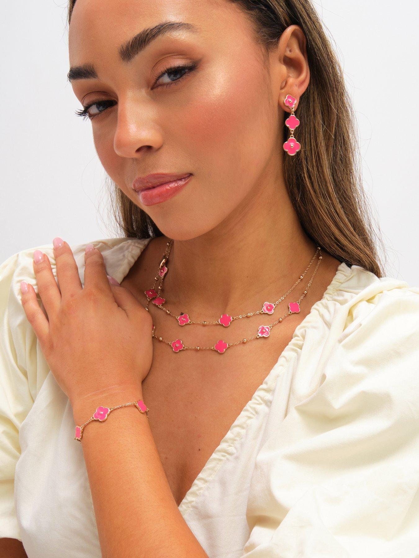 Mood Mood Gold Plated and Coral Clover Drop EarringsOur Mood Gold Plated and Coral Clover Drop Earrings is designed to add a lucky touch to your Jewellery collection, featuring a timeless charm with a pop of colour, these earrings are made to stand out in any outfit! Fastening: Post and bullet back. Width dimension: 13mm, length dimension: 42mm. Material: Gold plated base metal.