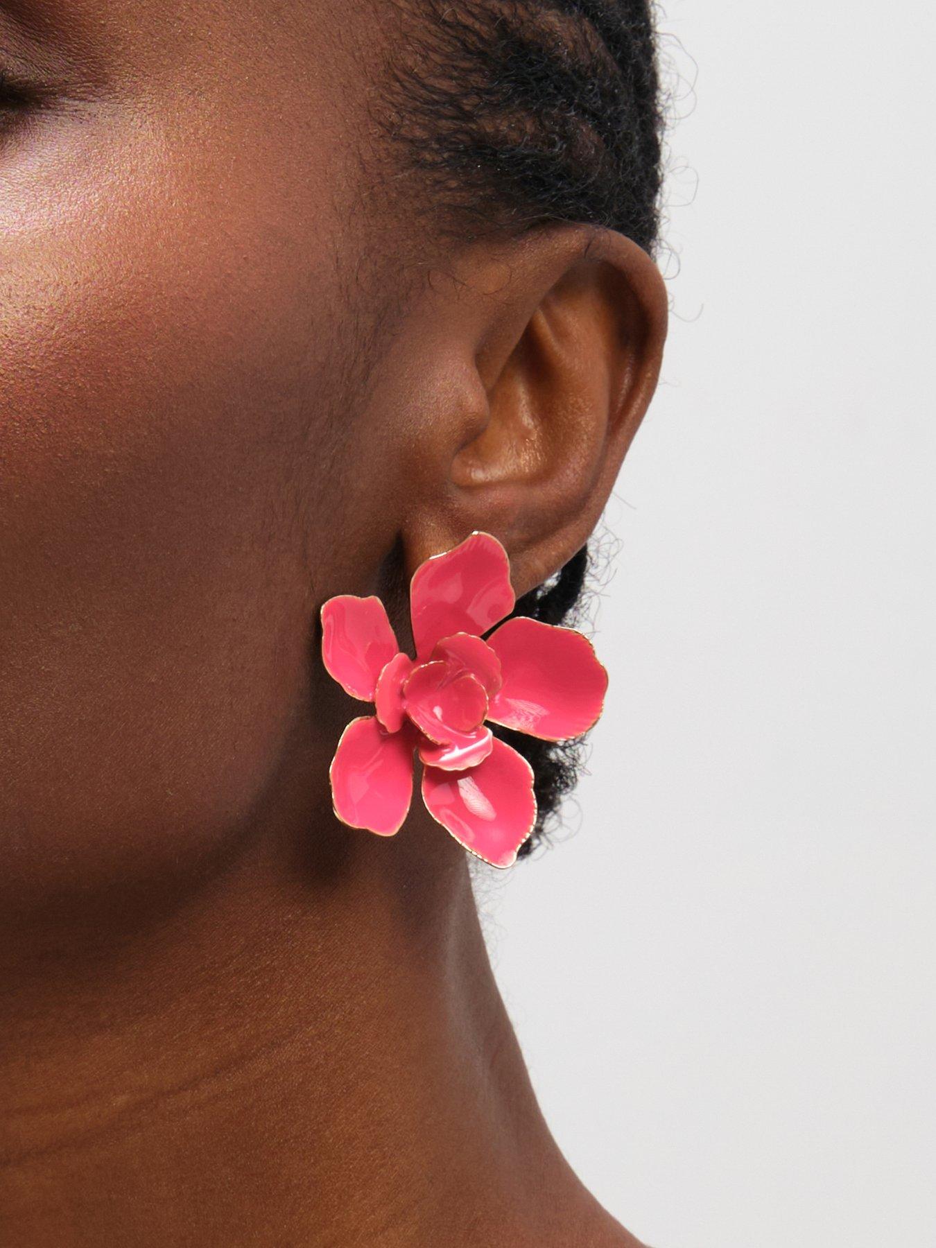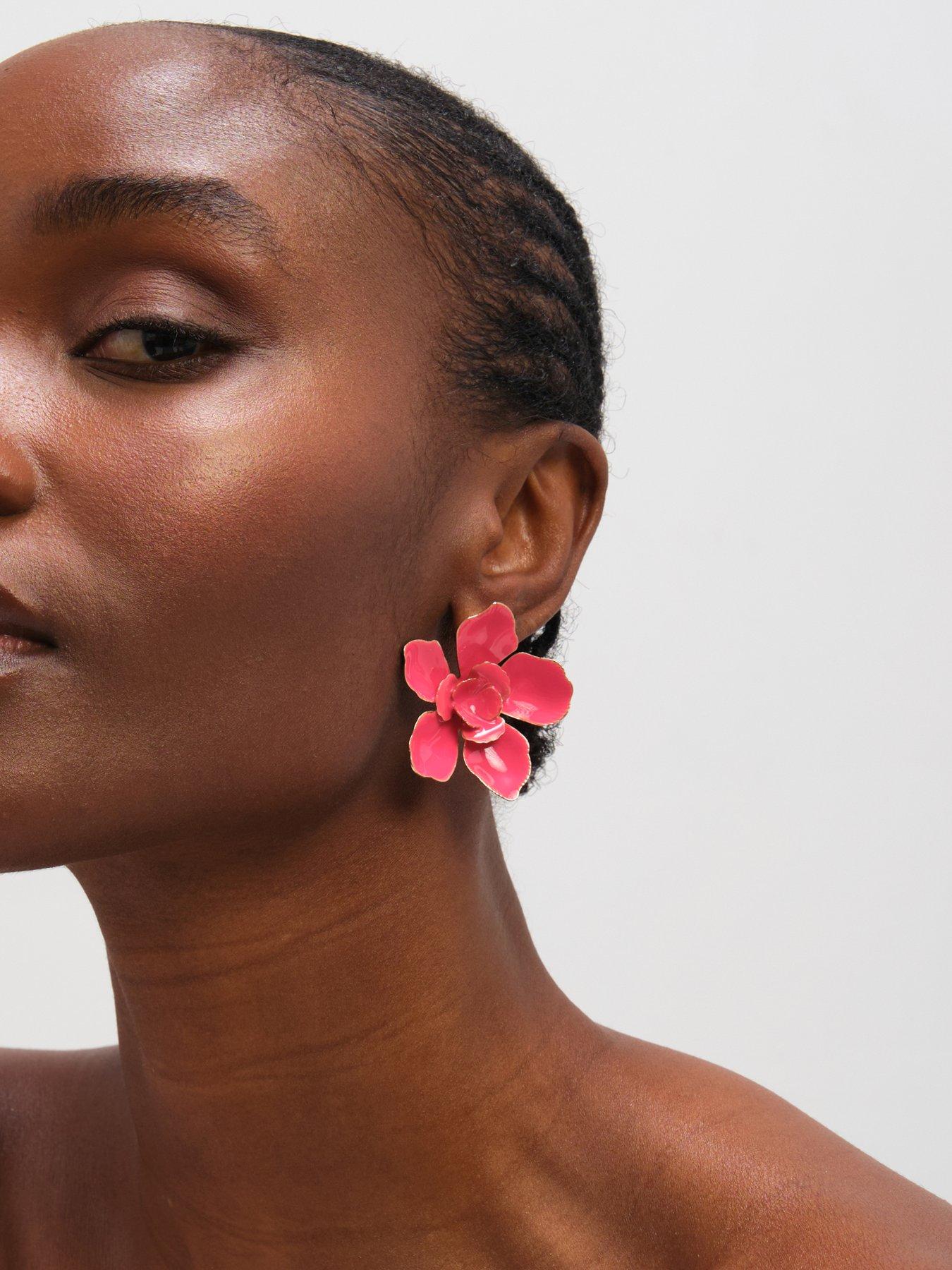 Mood MOOD GOLD PINK FLORAL EARRINGSOur Mood Gold Pink Floral Earrings are made to stand out this season, featuring a delicate and elegant, these earrings pair polished gold tones with soft pink floral detailing. Their fresh, feminine design adds a subtle touch of charm to any look, making them perfect for both everyday wear and special occasions. Fastening: Post and bullet back. Width dimension: 43mm, length dimension: 43mm. Material: Gold plated base metal.