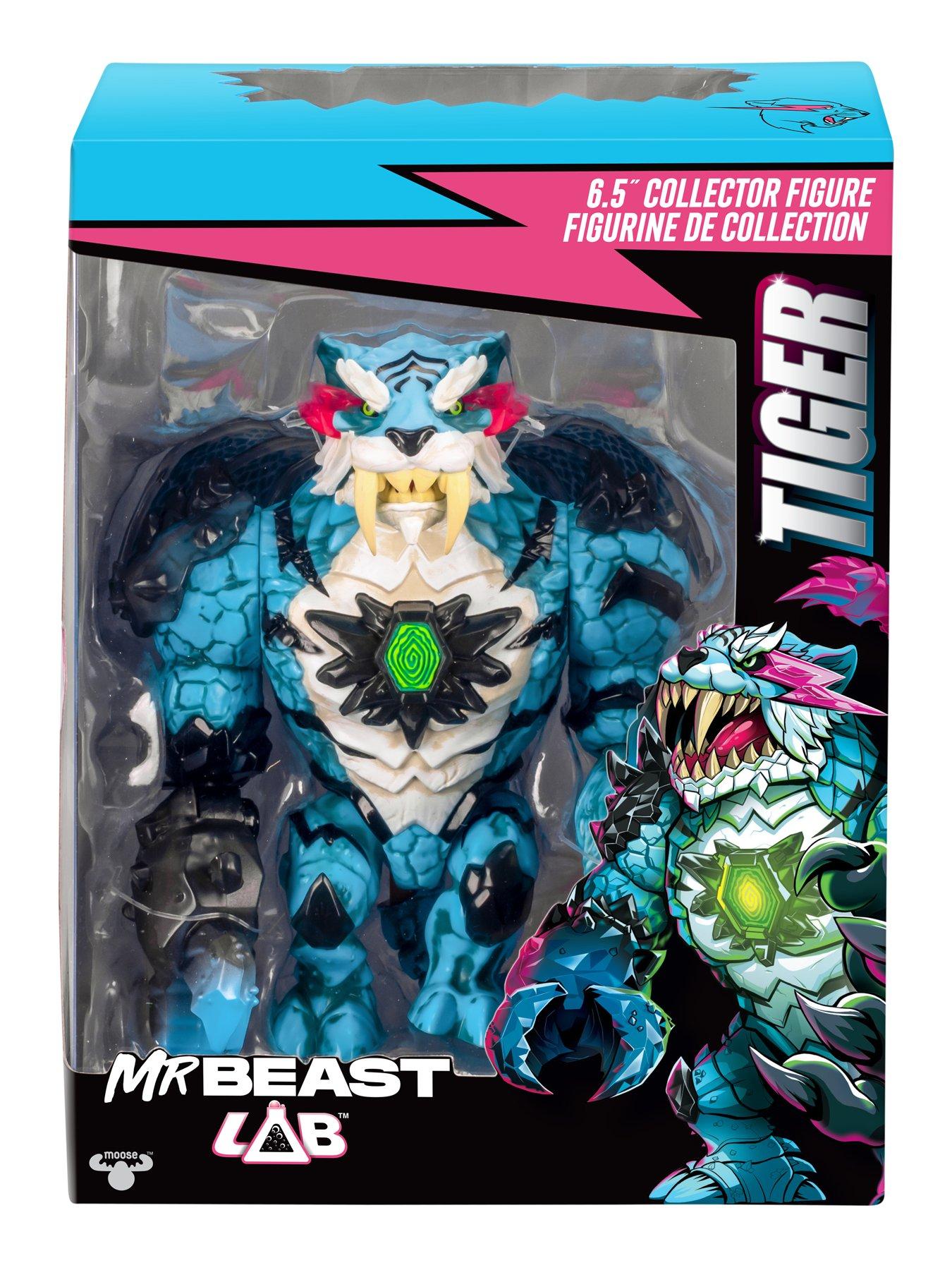 MrBeast Labs MrBeast Lab Apex Beast Collector Figure. Apex Beast Tiger.Take your display to the next level with the ULTIMATE MrBeast Lab Tiger Collector Figure. Prepare to be amazed as you reveal your Collector Figure Tiger by lifting off the iconic MrBeast briefcase sleeve. This Tiger apex predator embodies the perfect balance of strength and untamed agility, crafted to be the most EPIC beast of all time. Standing tall at 6.25' (15.8cm), the MrBeast Lab Tiger Collector Figure features extreme detailing, premium packaging, and 13 points of articulation. But wait, there's more. Control its chomp jaw for an EPIC attack. Plus, hidden within the collection are 10,000 Platinum Tigers, will you discover one of them? Be the envy of collectors by showcasing your MrBeast Lab Collector Tiger in your collection. Get yours today and elevate your display.