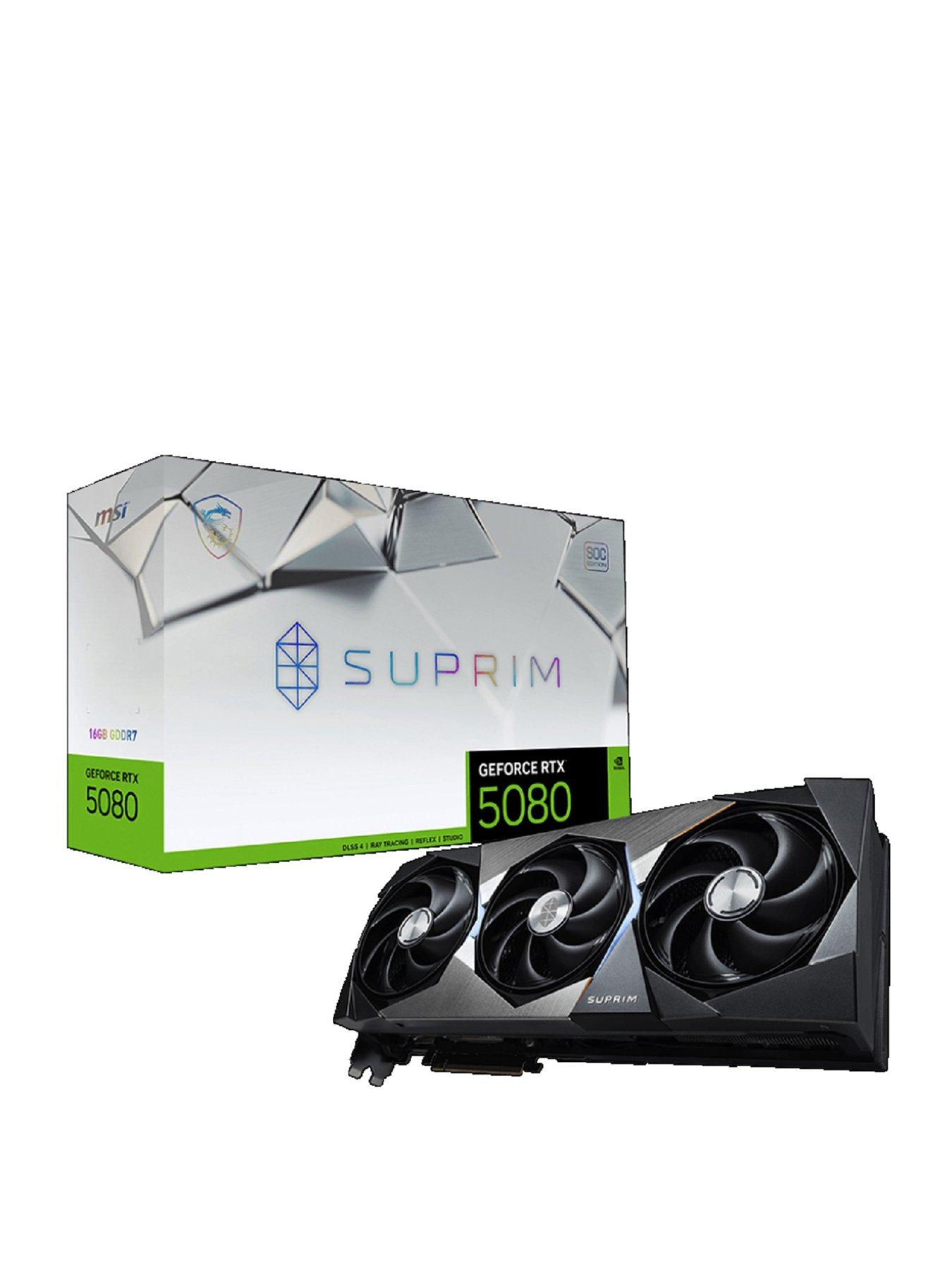 MSI GeForce RTX 5080 16G SUPRIM SOC GDDR7 256bit Gaming Graphics Card - next-level performance for gamers and creatives.NVIDIA BLACKWELL GEFORCE RTX 50 SERIES GRAPHICSThe next generation of NVIDIA graphics cards use cutting-edge AI to transform performance for both work and play. Powered by the new Blackwell architecture, fifth-generation Tensor Cores and fourth-generation RT Cores, GeForce RTX 50 Series graphics cards deliver breakthroughs in colour, detail and realism. New DLSS 4 uses AI to boost FPS, reduce latency, and improve image quality with enhanced Ray Reconstruction and Super Resolution. Gamers can enjoy ultimate responsiveness, with faster target acquisition, quicker reaction times, and improved aim precision in competitive games. Creative can discover transformative performance in video editing, 3D rendering, and graphic design. GAME-CHANGING REALISM Unleash extraordinary performance with the MSI SUPRIM graphics card crafted with premium materials. NVIDIA Blackwell architecture unlocks the game-changing realism of full ray tracing. Experience cinematic-quality visuals at unprecedented speed. DLSS 4 neural rendering technologies - including Multi Frame Generation, Ray Reconstruction and Super Resolution - use AI to boost FPS, reduce latency, and improve image quality. NVIDIA Reflex 2 also ensures ultimate responsiveness, with faster target acquisition, quicker reaction times and improved aim precision. HYPER FROZR THERMAL DESIGN Advanced thermal design combines fans, core pipes and a vapor chamber to unleash unparalleled cooling efficiency for peak system efficiency even in the most demanding gaming sessions. The Stormforce fan features 7 claw-textured blades to enhance airflow with minimal noise.