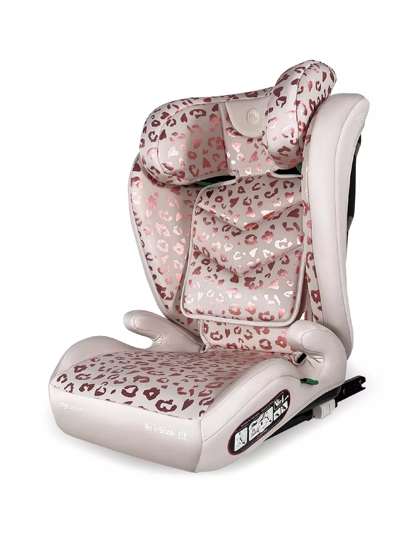 Suitable from 100cm right up to 150cm (approx. 4 to 12 years), these My Babiie Car Seats provide comfort and safety for you little one on every journey. As part of the latest R129 / i-Size standard, this car seat has had extensive crash and safety testing. With a stylish blush leopard padded seat and isofix connectors, this car seat seat is designed to ensure your child travels in comfort and safety.- Depth: 450 MM
