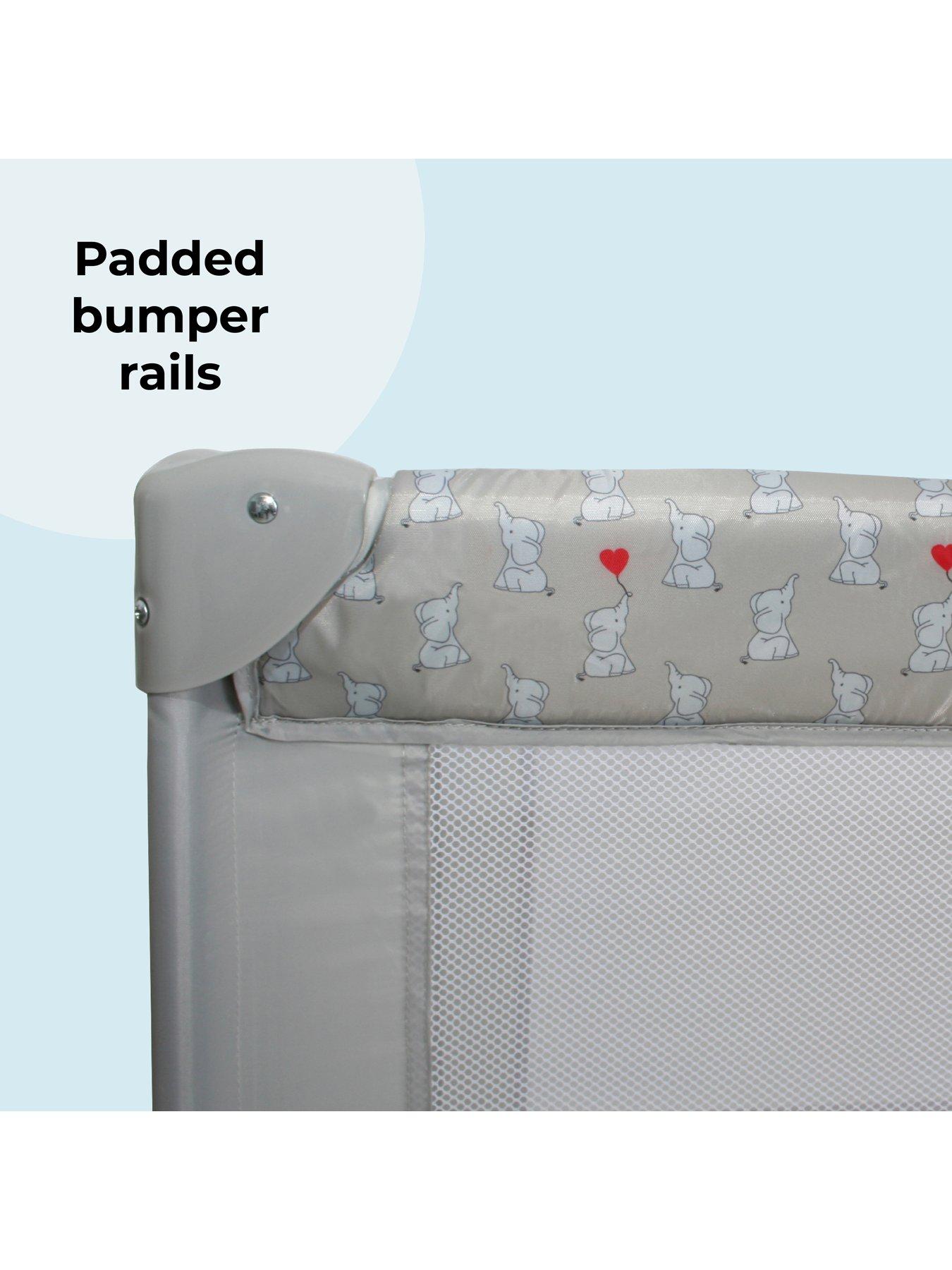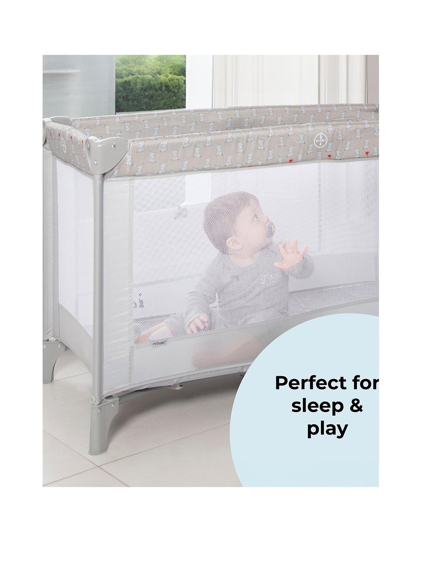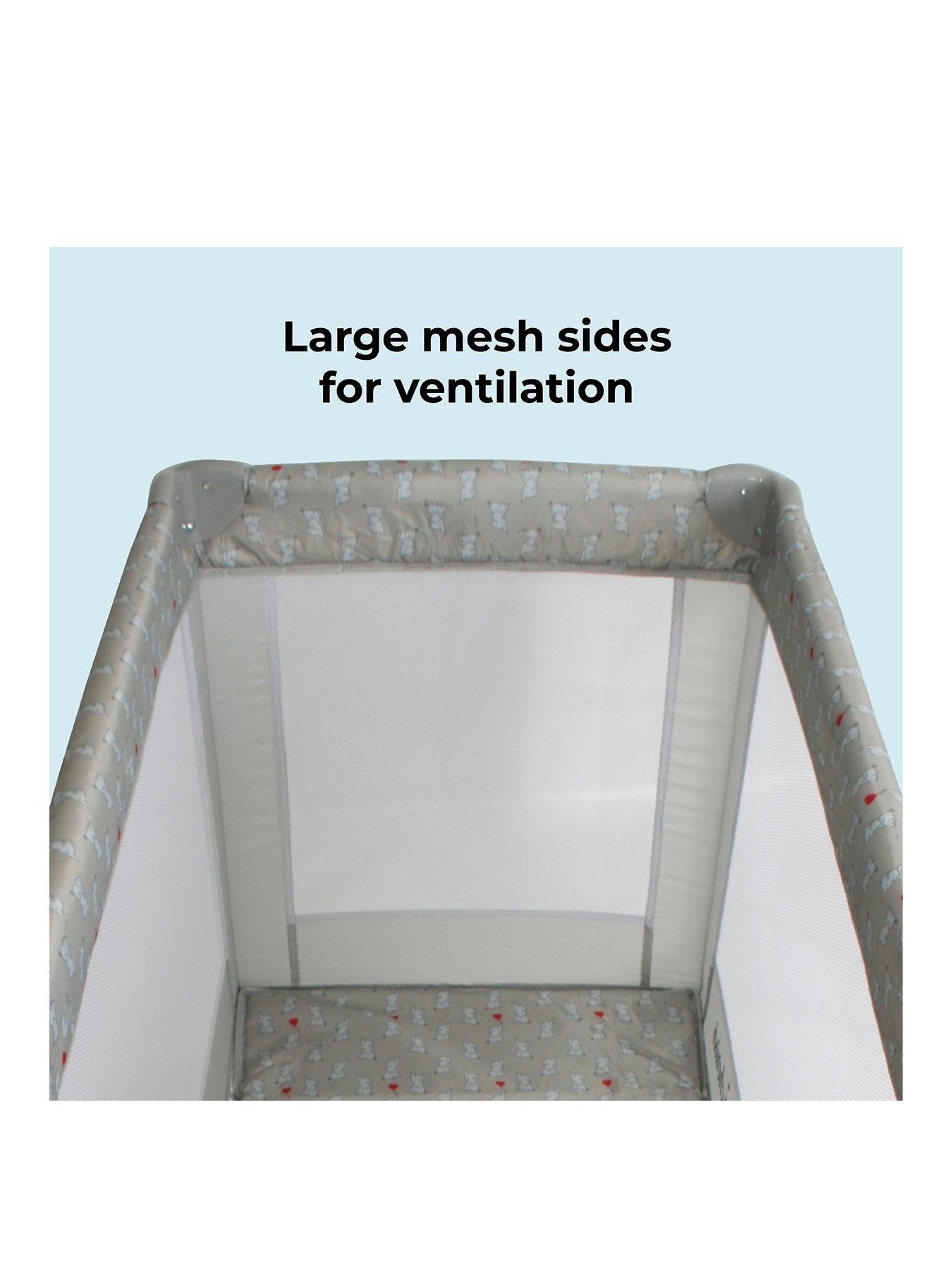My Babiie Elephants Travel CotThis My Babiie Elephants Travel Cot is quick and easy to assemble and looks gorgeous. This travel cot can double up as a Playpen and is a must have travel essential for babies. This great value travel companion is suitable from birth and comes complete with a handy carry bag with handles.- Quick and easy to open and fold down - Handy carry bag included for easy of transportation - Lightweight and compact - 4 sides mesh, great for ventilation - Padded bumper rails - Mattress base included - Stylish elephant design - Perfect for holidays and overnight stays - Also makes a great play pen - Suitable from birth to 15kg"