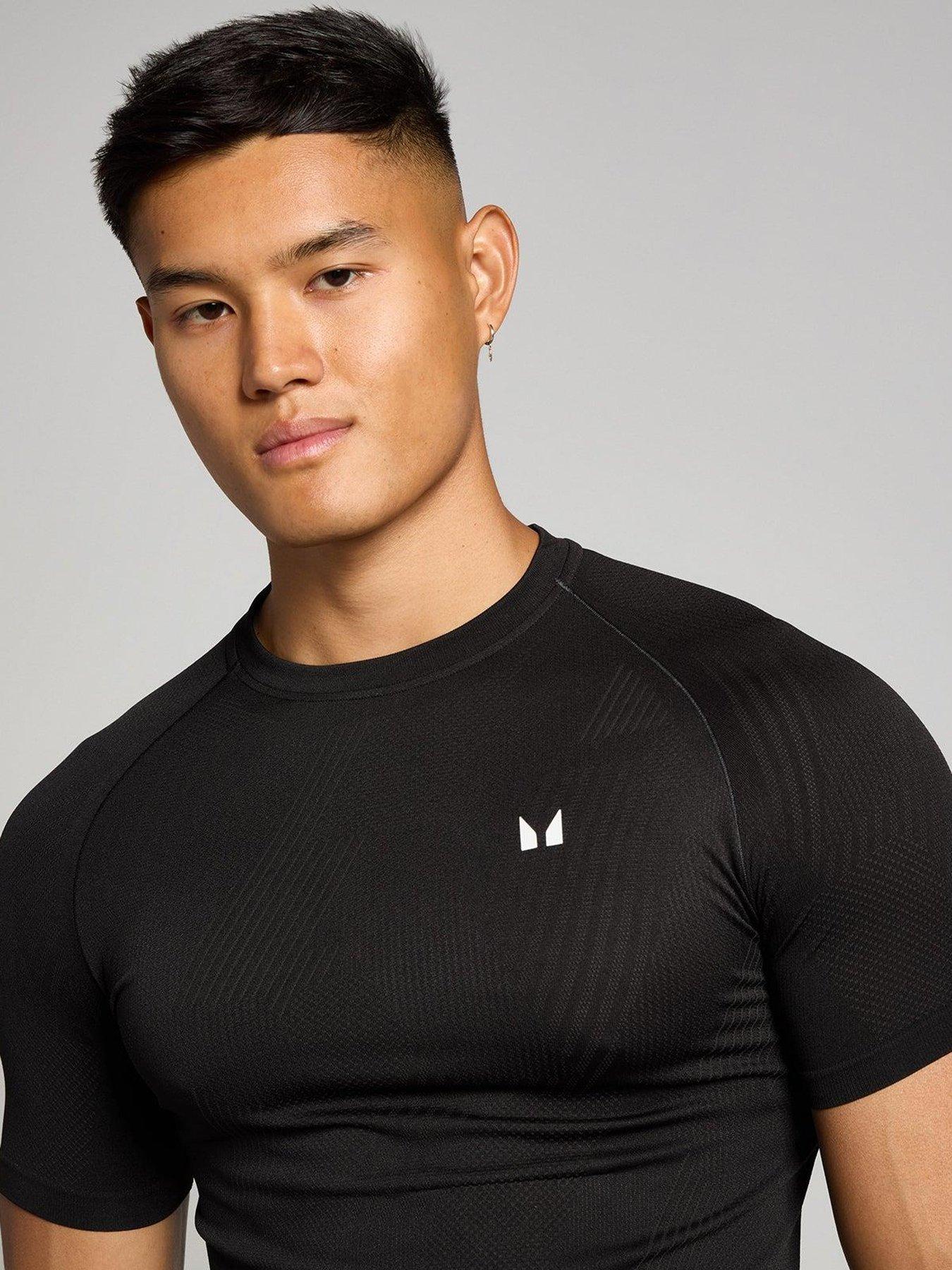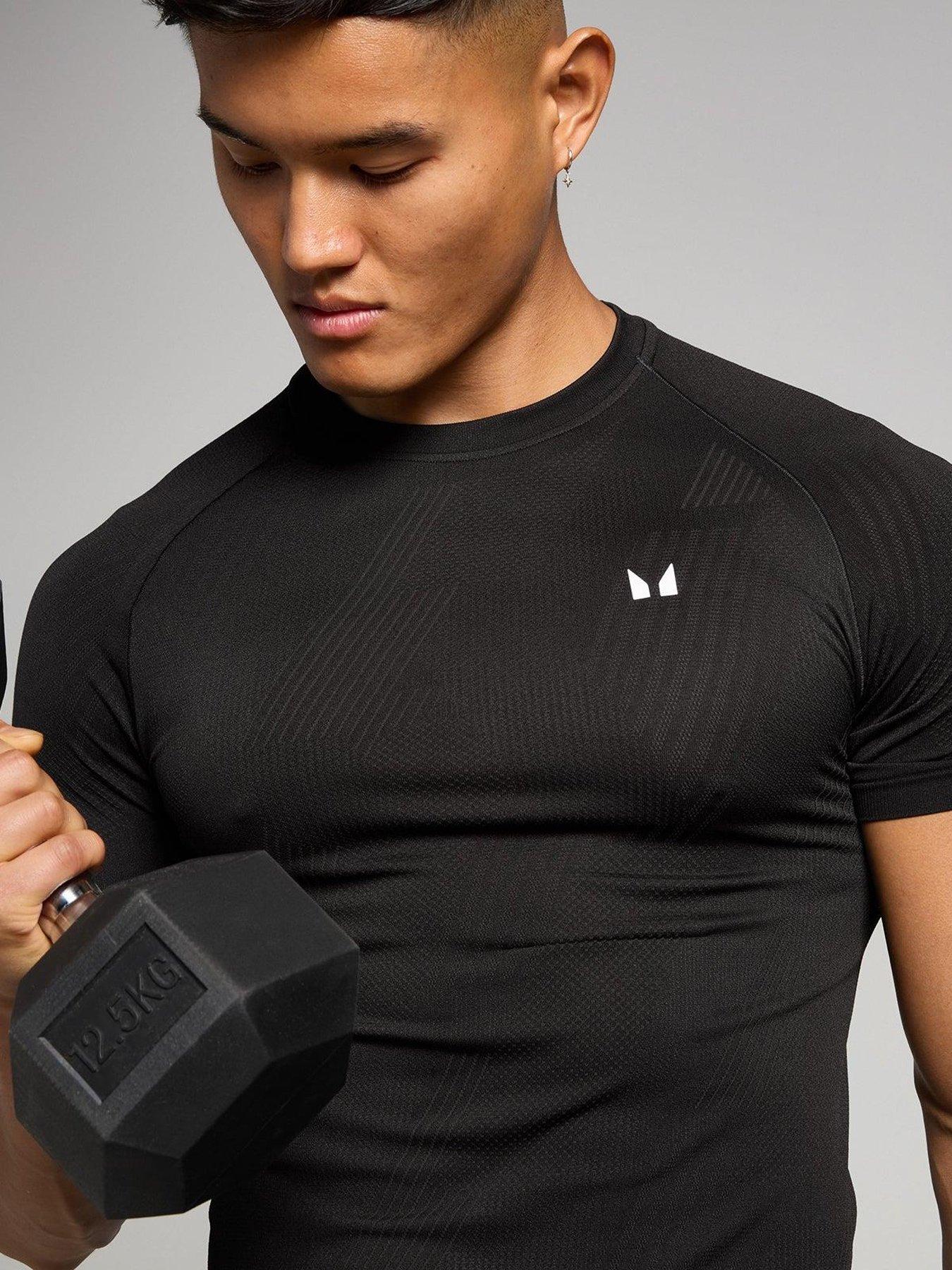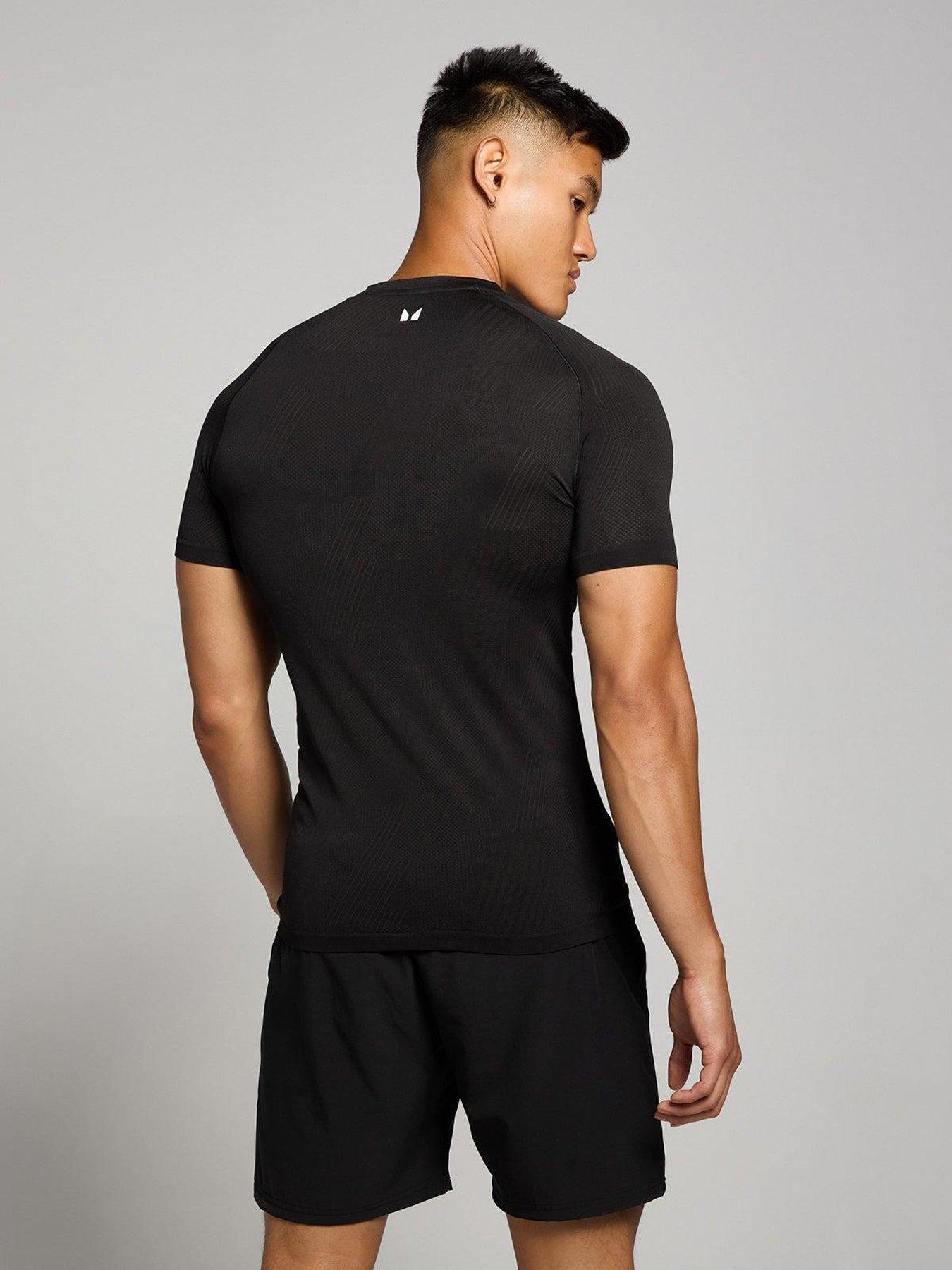 MyProtein Mens Training Pillar Graphic Seamless Top - BlackThe MP Men Tempo Pillar Graphic Seamless T-Shirt is designed for high-performance training with a streamlined, modern look. Featuring seamless construction and lightweight stretch fabric, this t-shirt helps reduce irritation while supporting unrestricted movement during intense workouts.Key Features