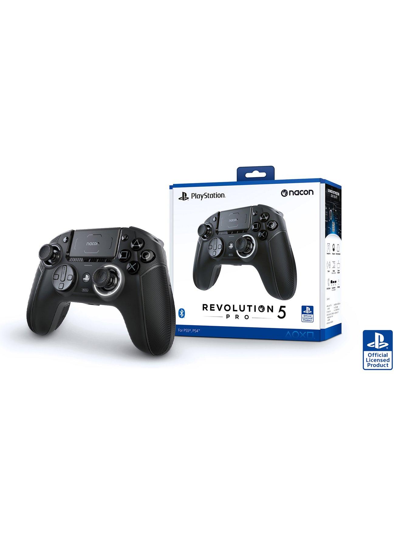 Nacon Revolution 5 Pro Controller - for the serious players.FIND YOUR PEAK PERFORMANCEWith the Revolution 5 Pro, you can play longer, as well as improving precision and performance. This premium asymmetrical controller is compatible with PS5, PS4 and PC, and has been engineered to deliver the high-quality features that players crave. NO MORE DRIFTING Boasting sticks and triggers with magnetic Hall effect technology to eliminate joystick drift issues (as well as doubling joystick lifespan), you also get a range of customisation options. Also includes trigger blockers and 2 positions, Bluetooth wireless audio and durable components. Switch easily from your console audio using radio frequency connection, to other audio devices using Bluetooth connection. |
