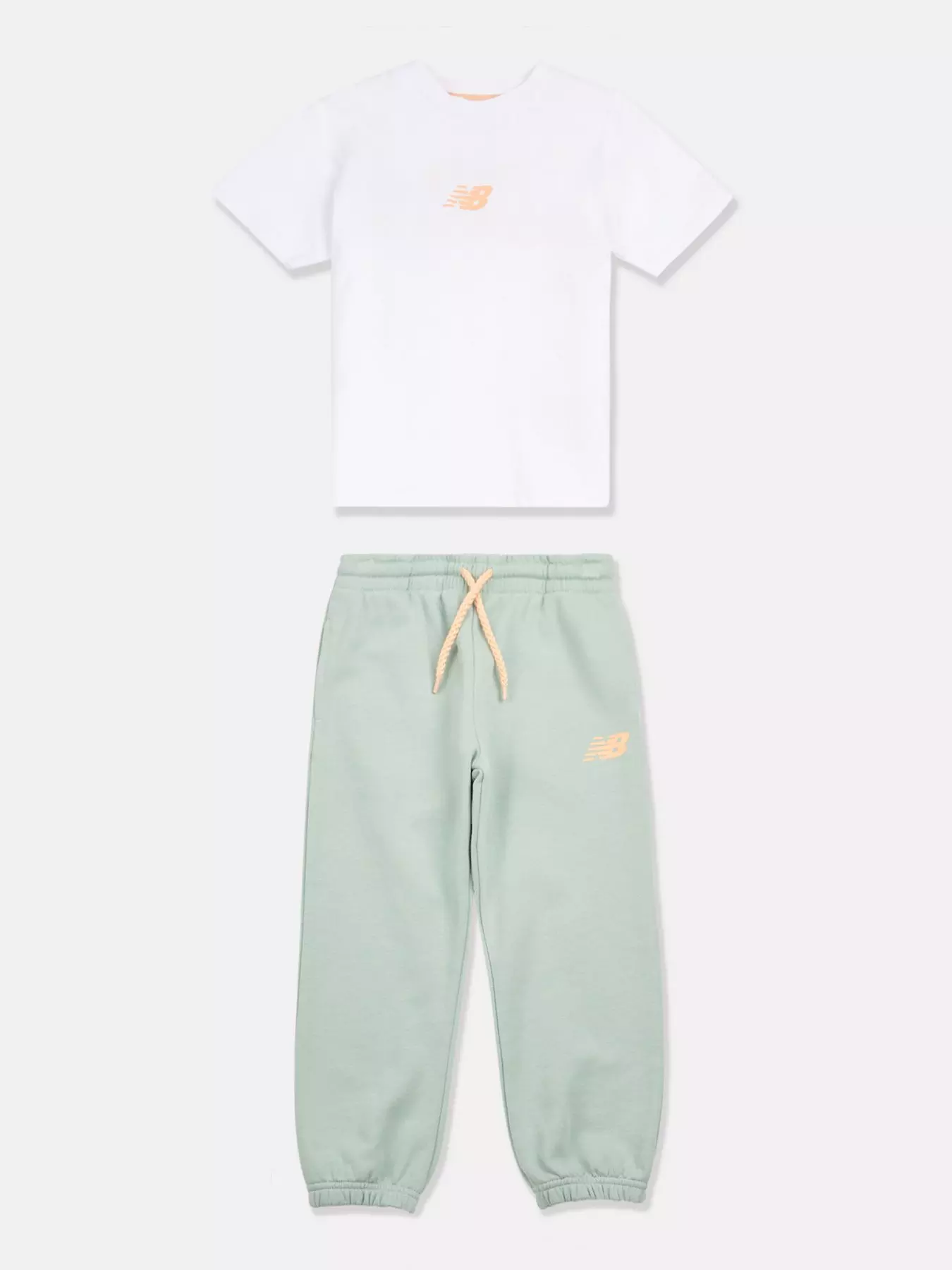 - Younger Girls Floral Logo Tee And Jogger Set - /White by New Balance