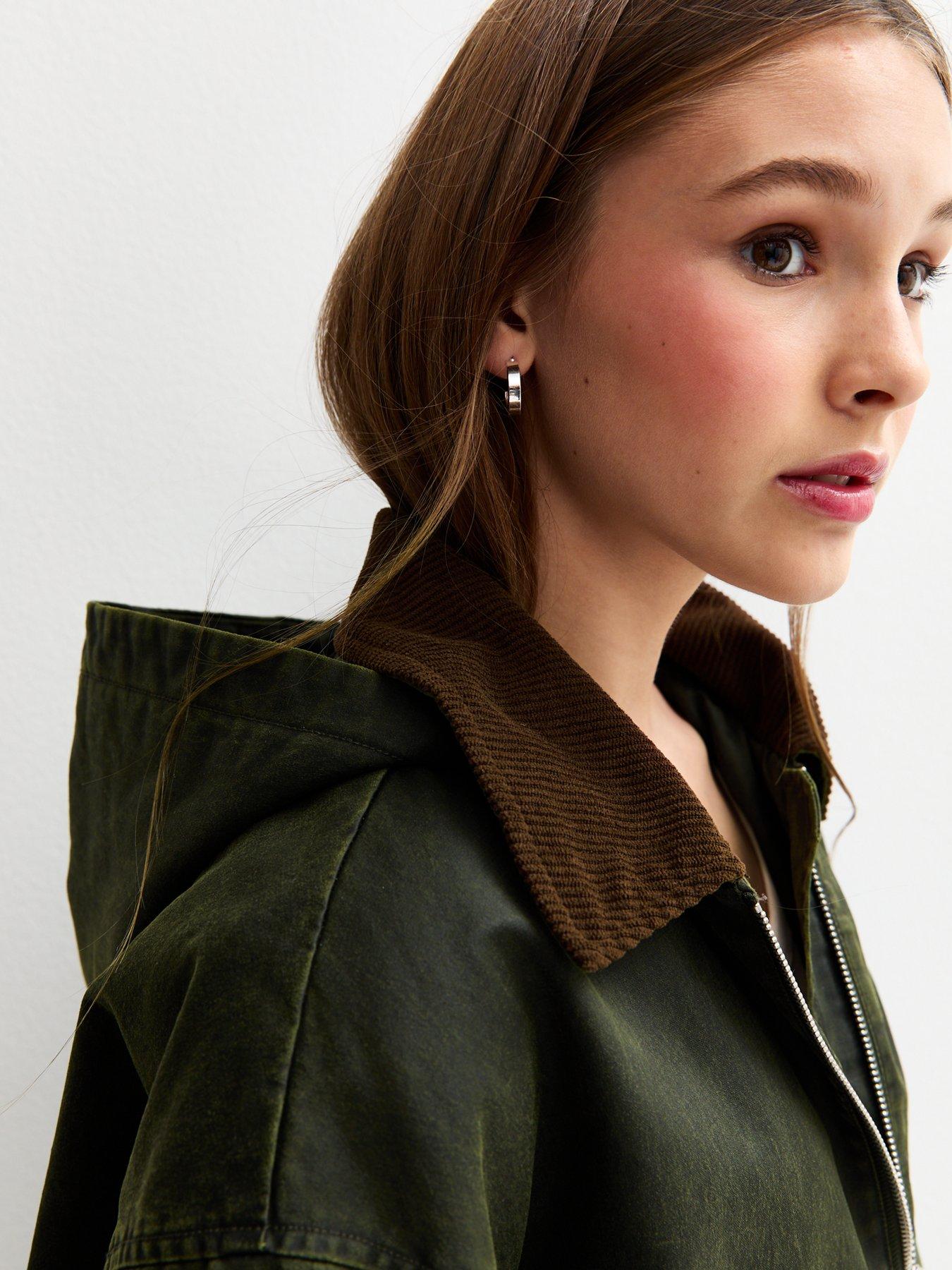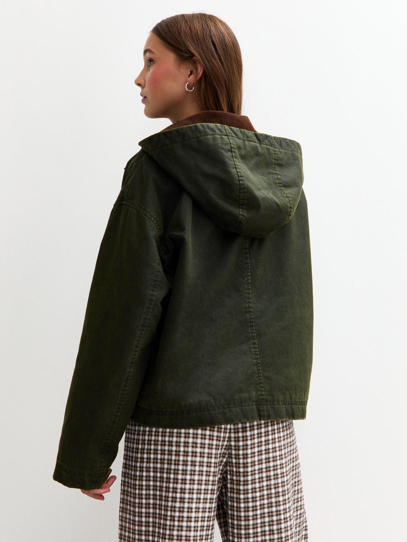 New Look 915 Girls Dark Khaki Coated Hooded JacketSize & Fit