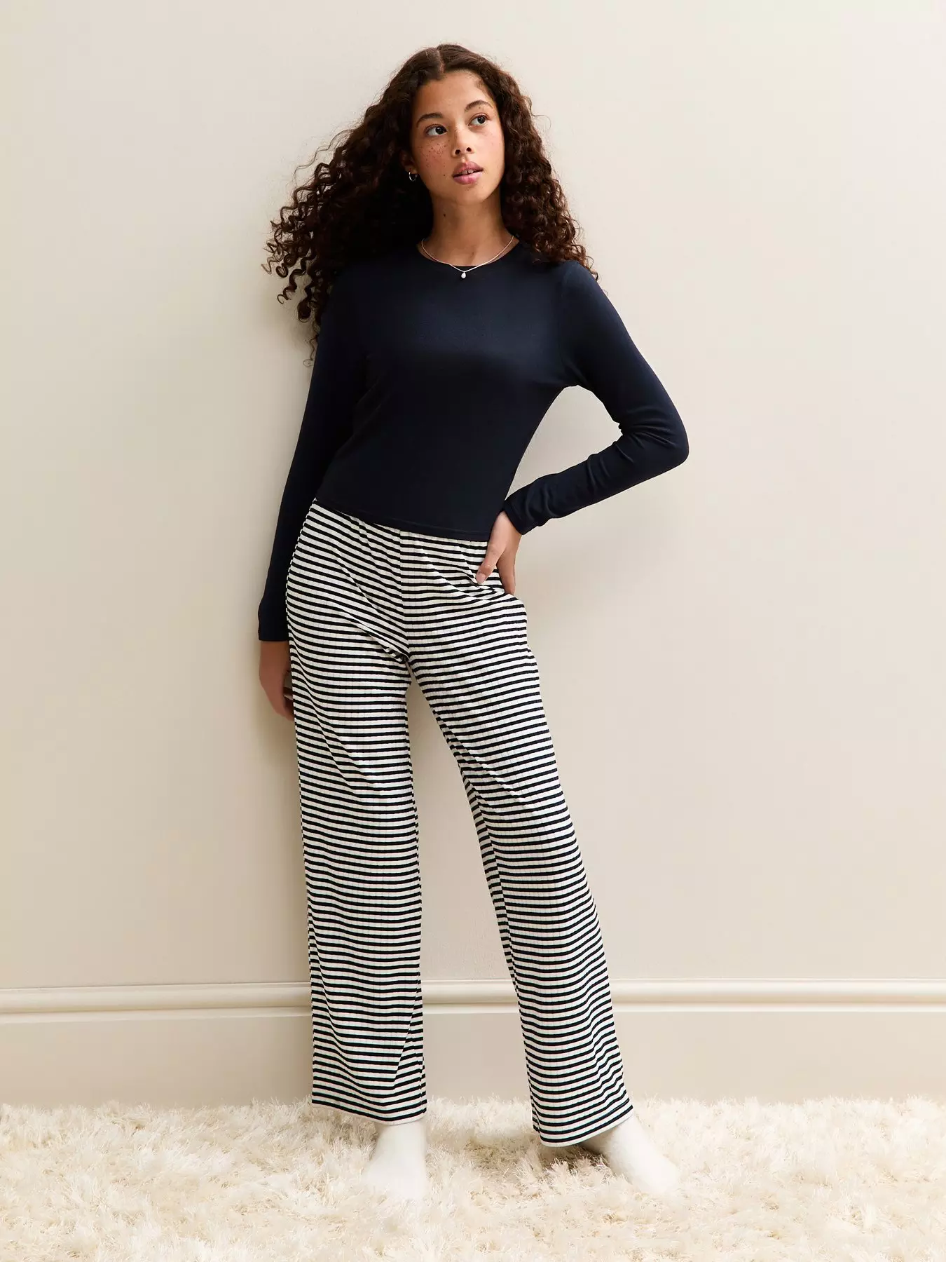 - Long Sleeve Top and Striped Trousers Pyjamas Set by New Look 915