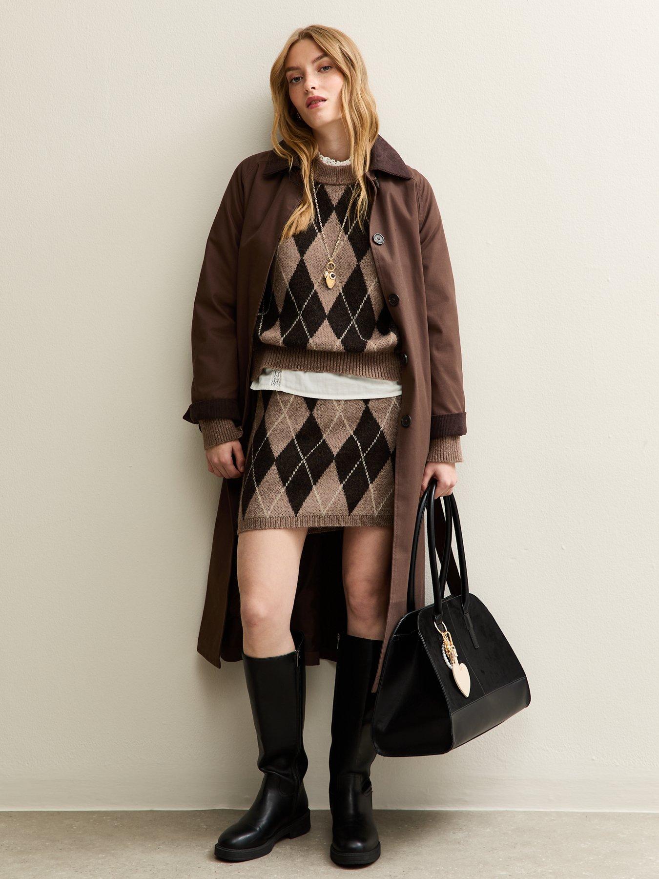 New Look Argyle Crew Neck Midweight Knit Jumper