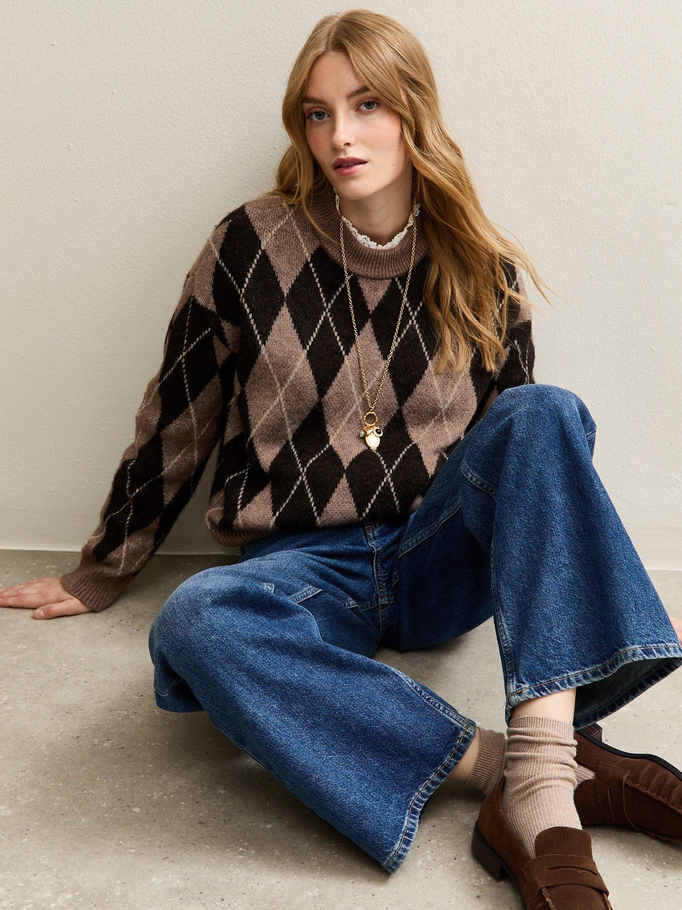 • Argyle Crew Neck Midweight Knit Jumper by New Look