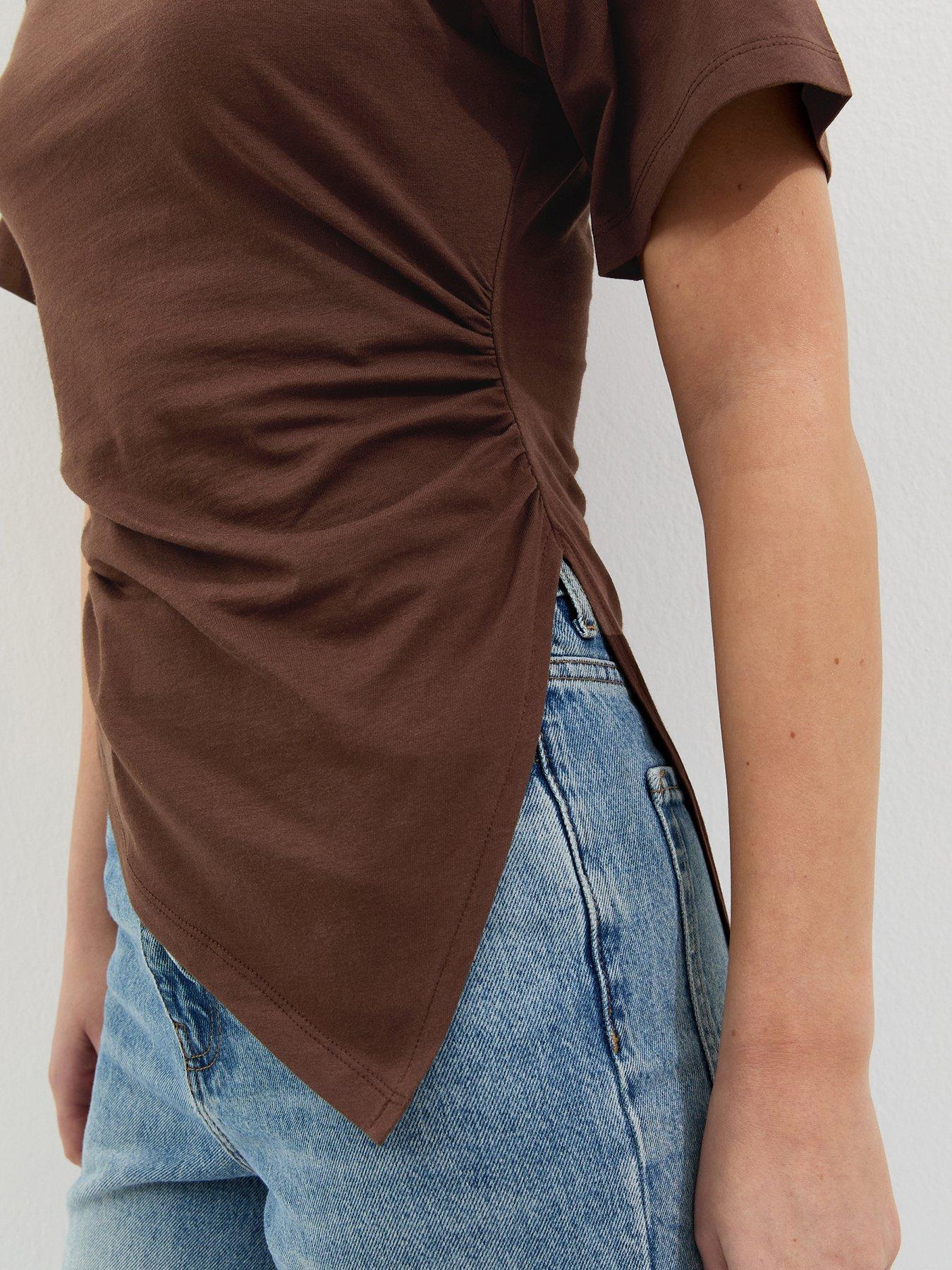 • Asymmetric Split Hem Corset T-Shirt - Dark Brown by New Look