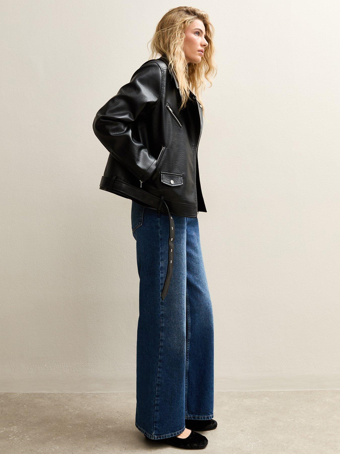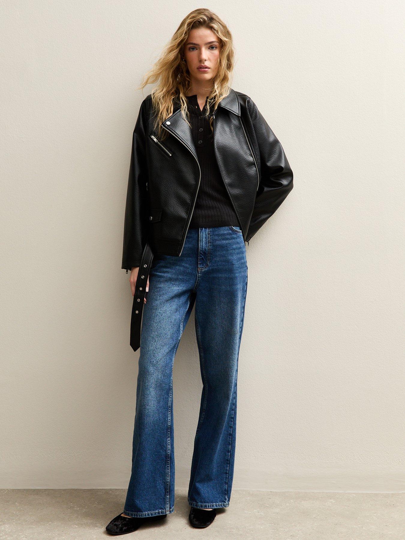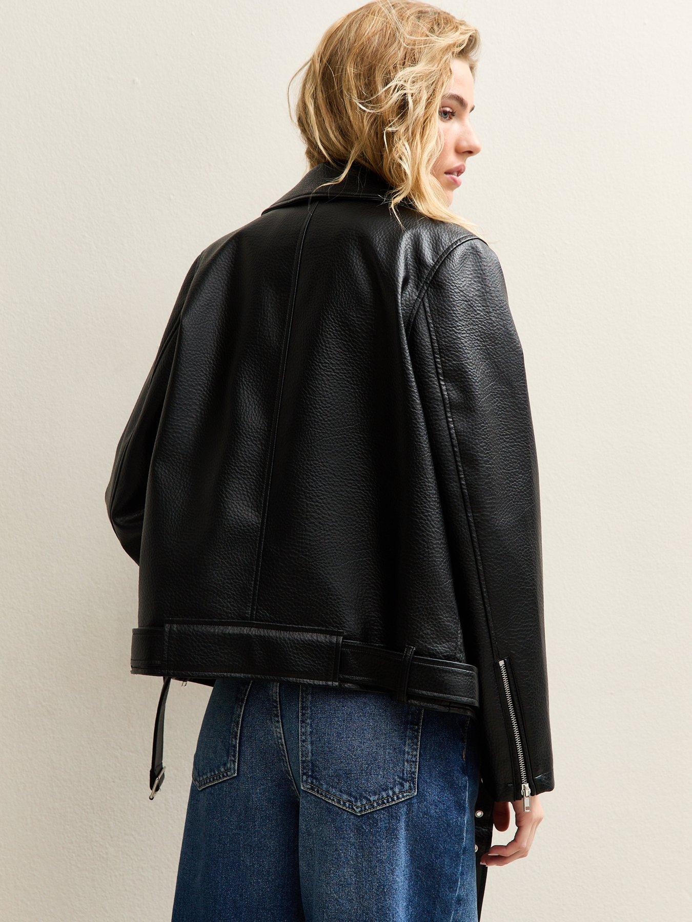 New Look Black Faux Leather Textured Oversized Biker Jacket