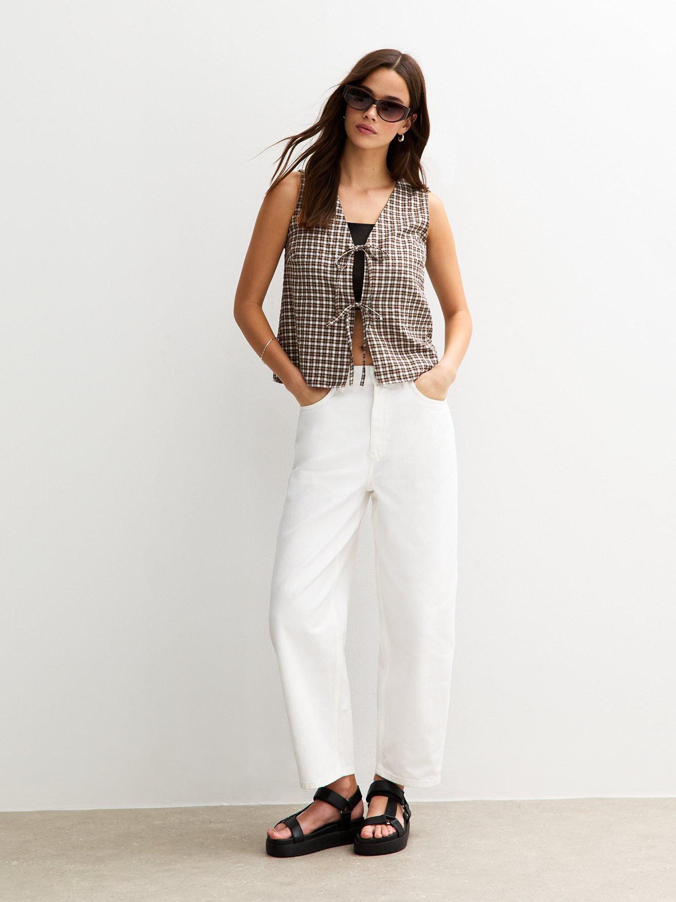 New Look Textured Check Pattern Tie Front Top