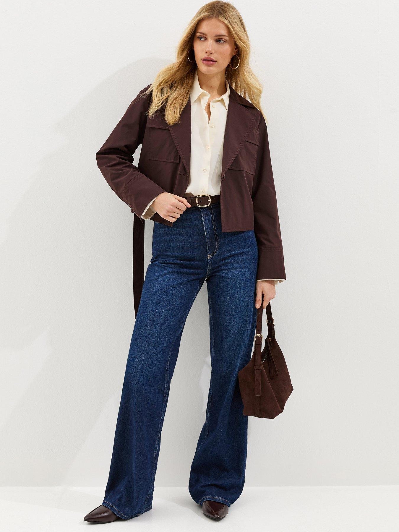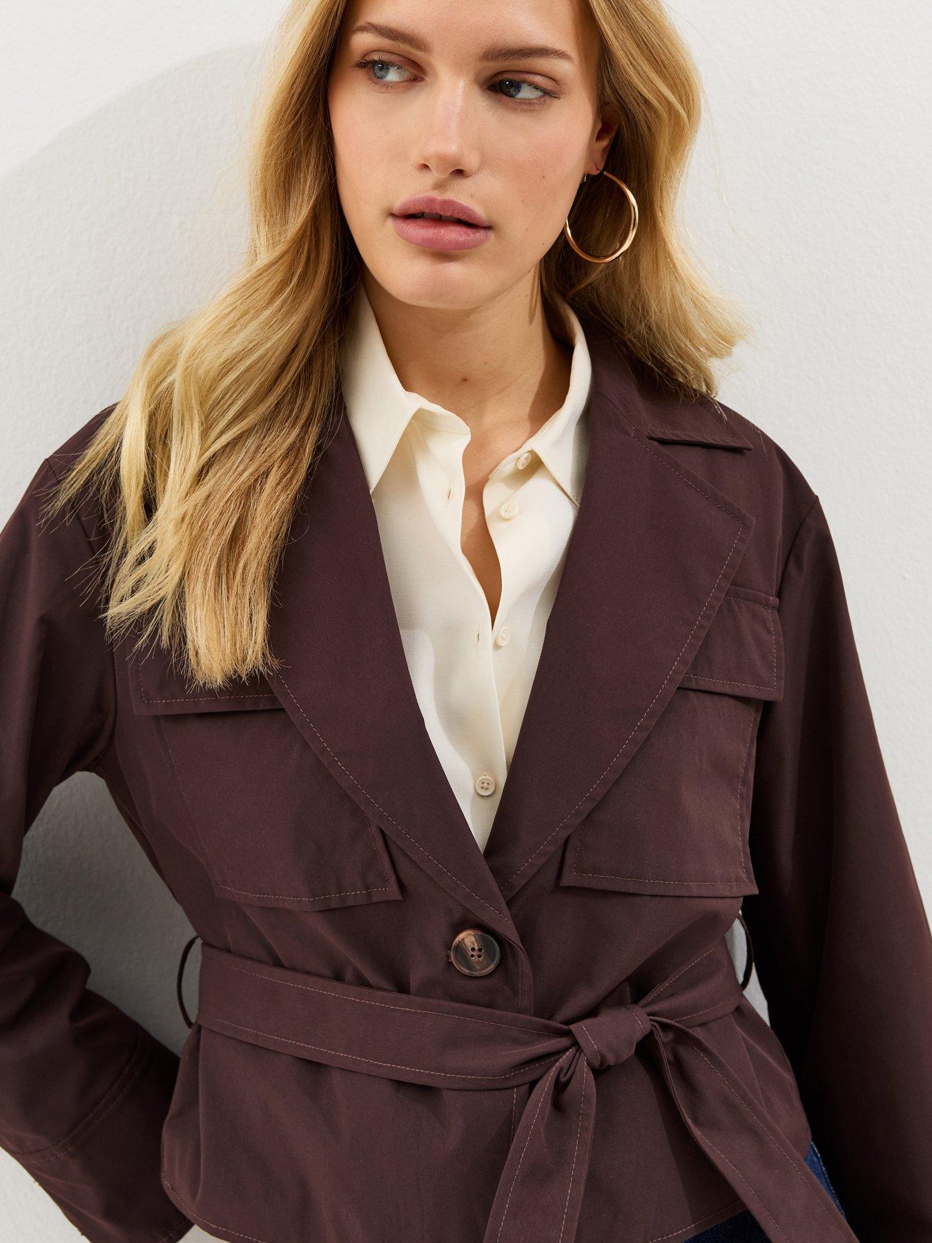 New Look Brown Double Pocket Belted Short Belted Mac