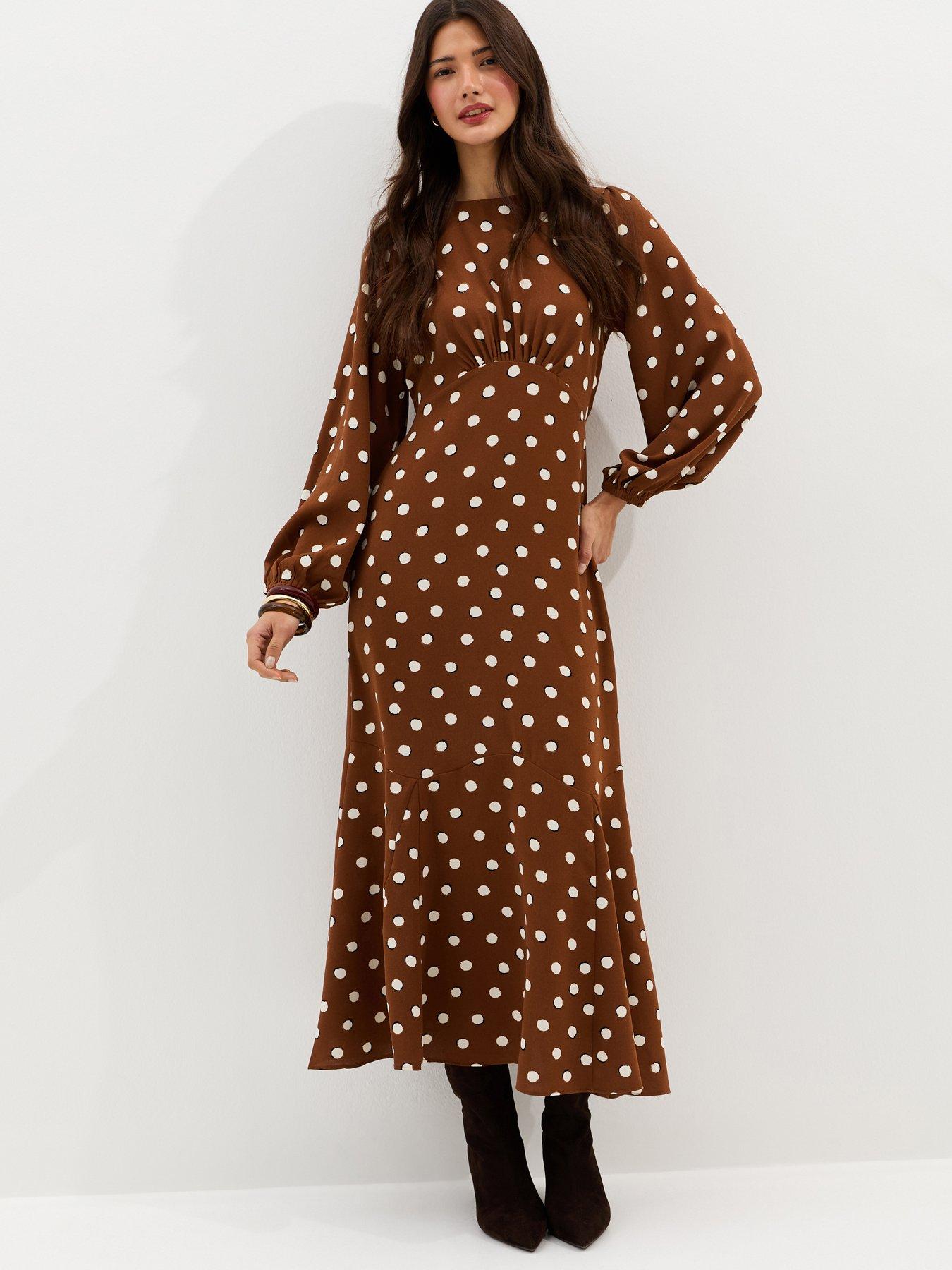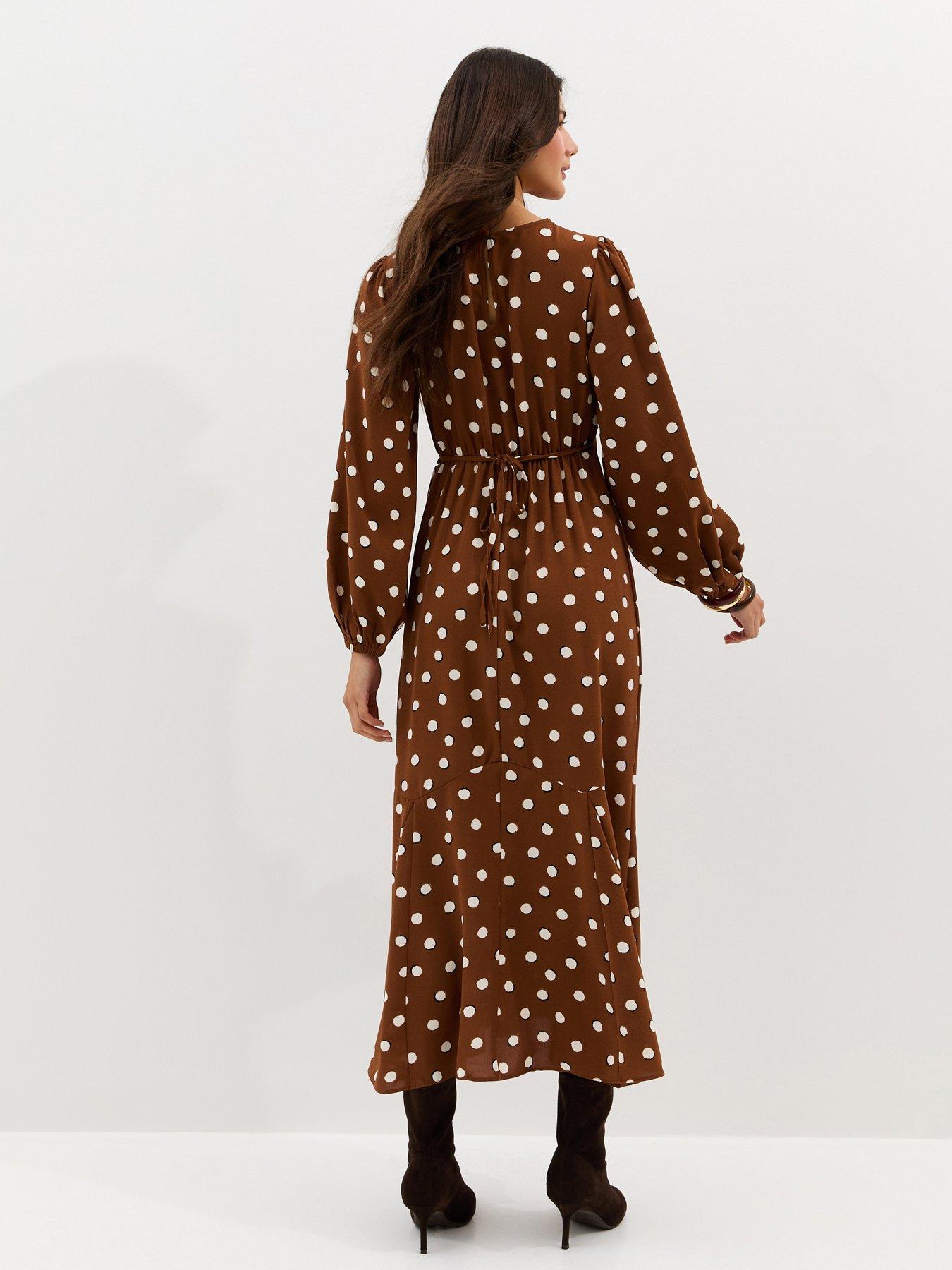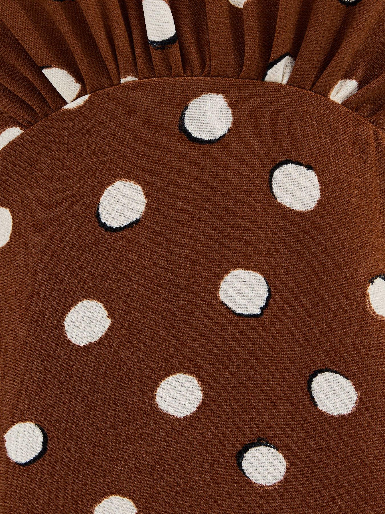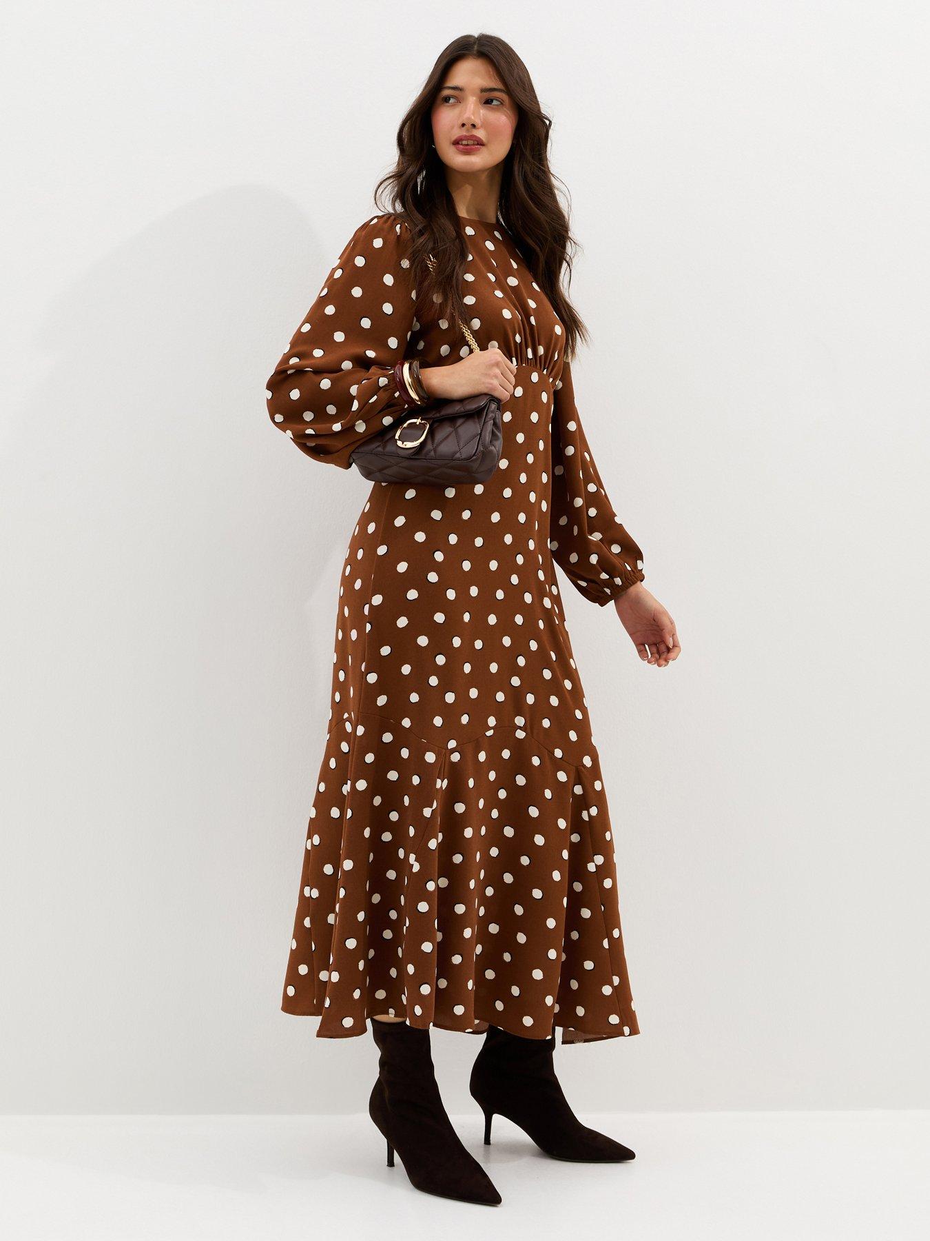 New Look Brown Polka Dot Godet Midi Dress