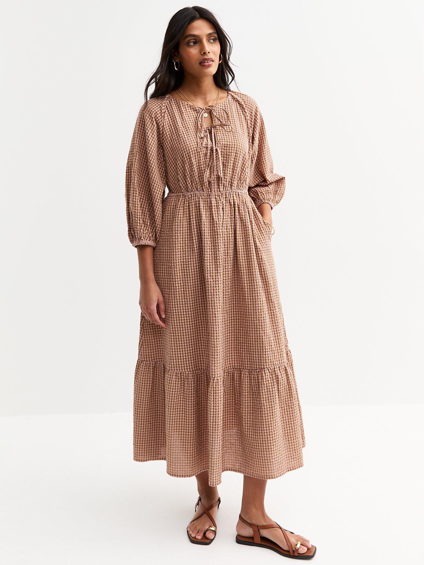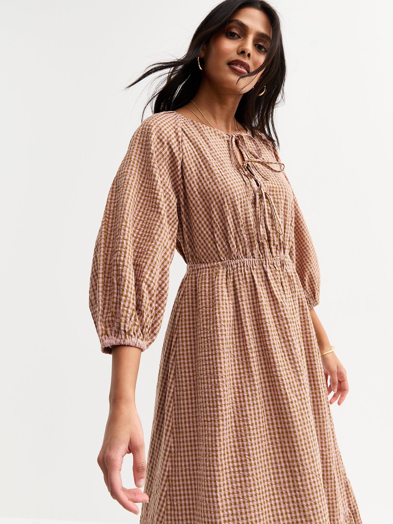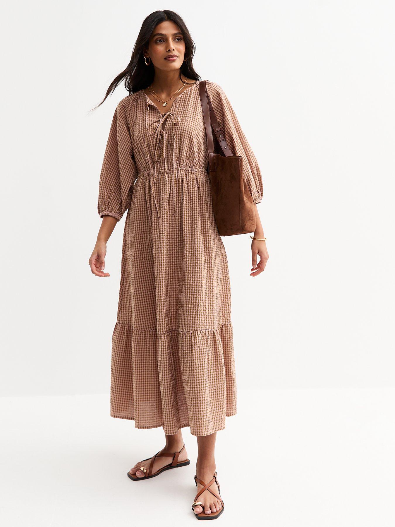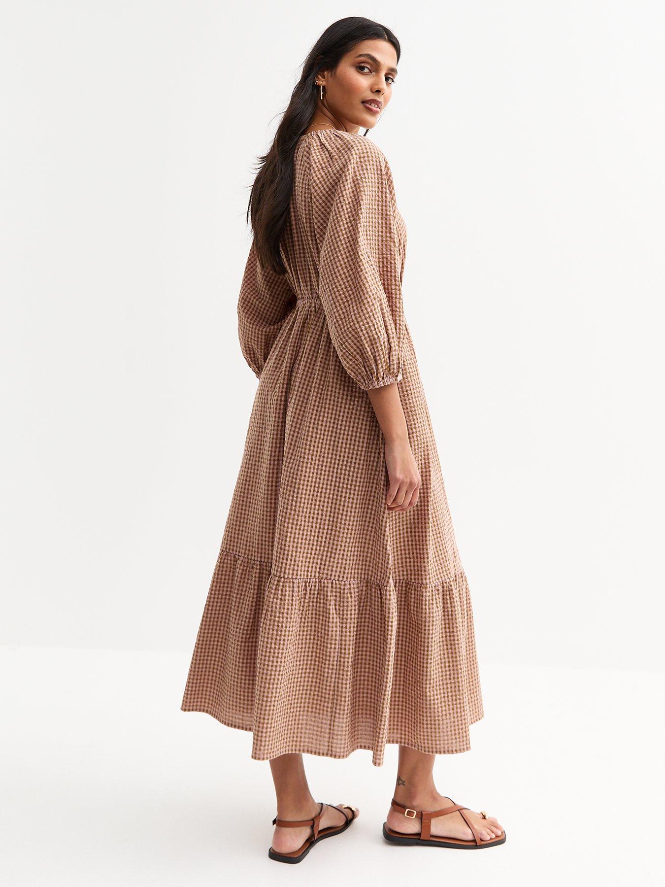 New Look Brown Checked Midi Smock Dress