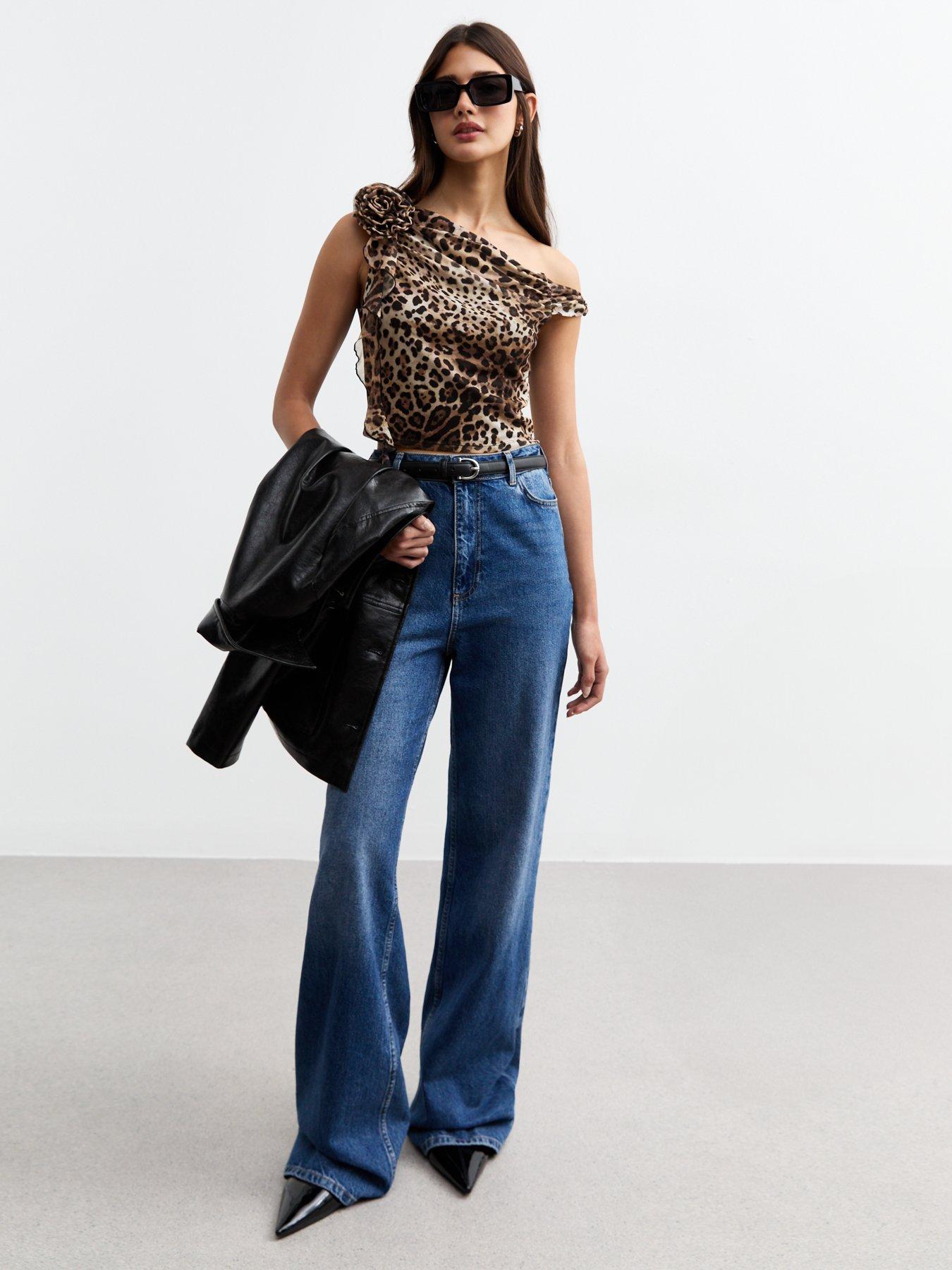 • Corsage Leopard Print One Shoulder Top by New Look