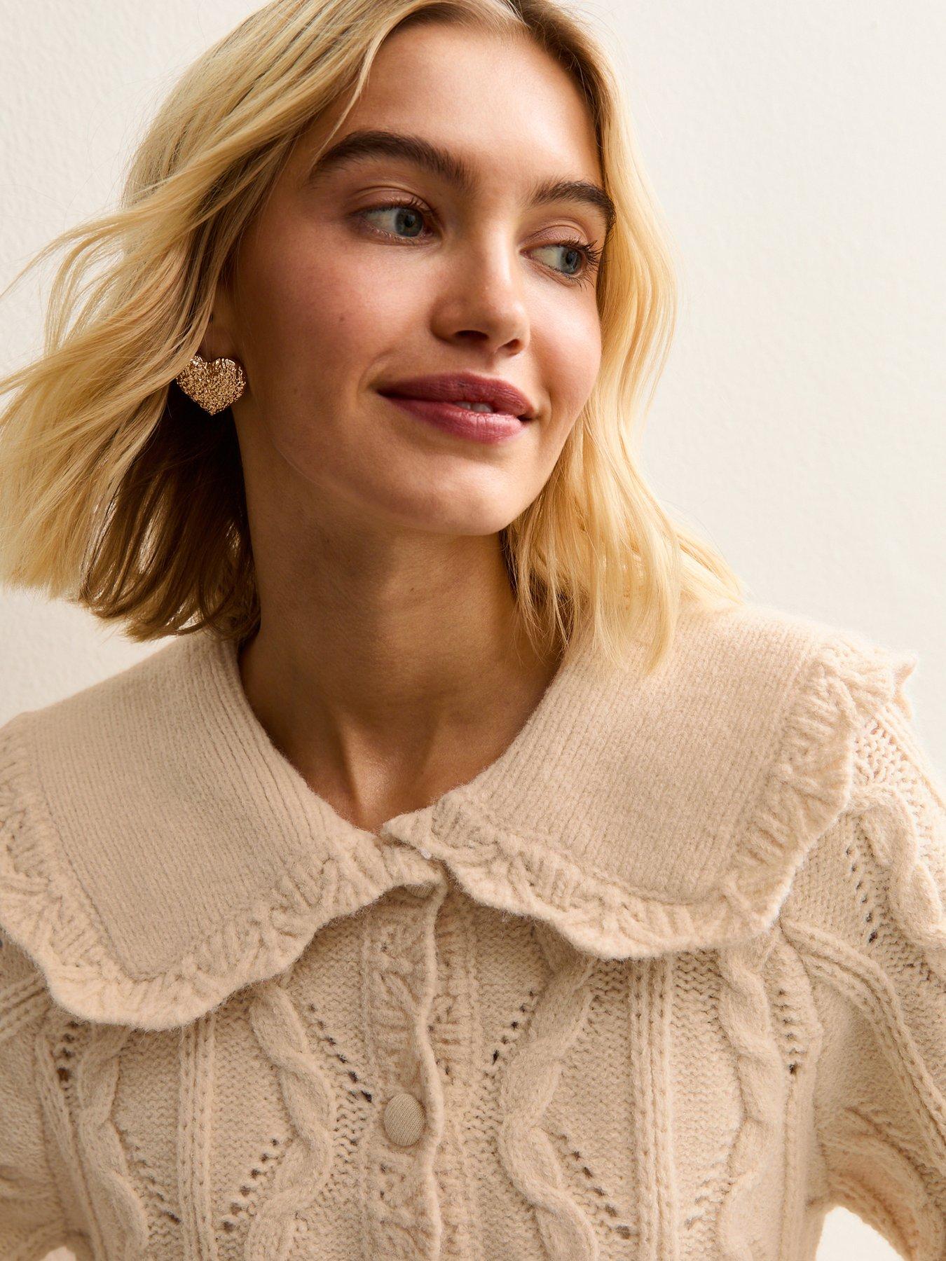 New Look Stitch Collar Cardigan - Cream