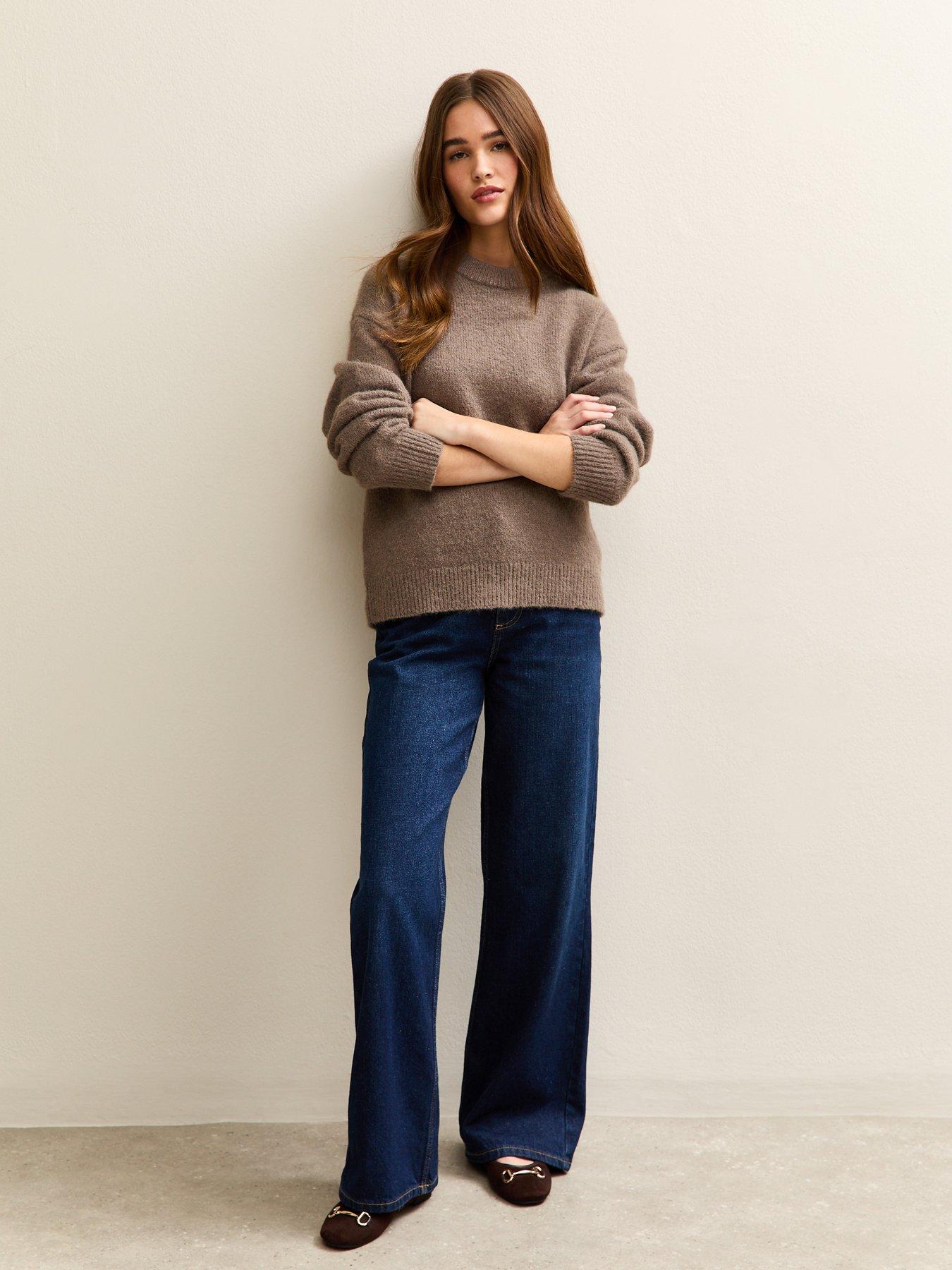 New Look Crew Neck Oversized Textured Knit Jumper - Mink