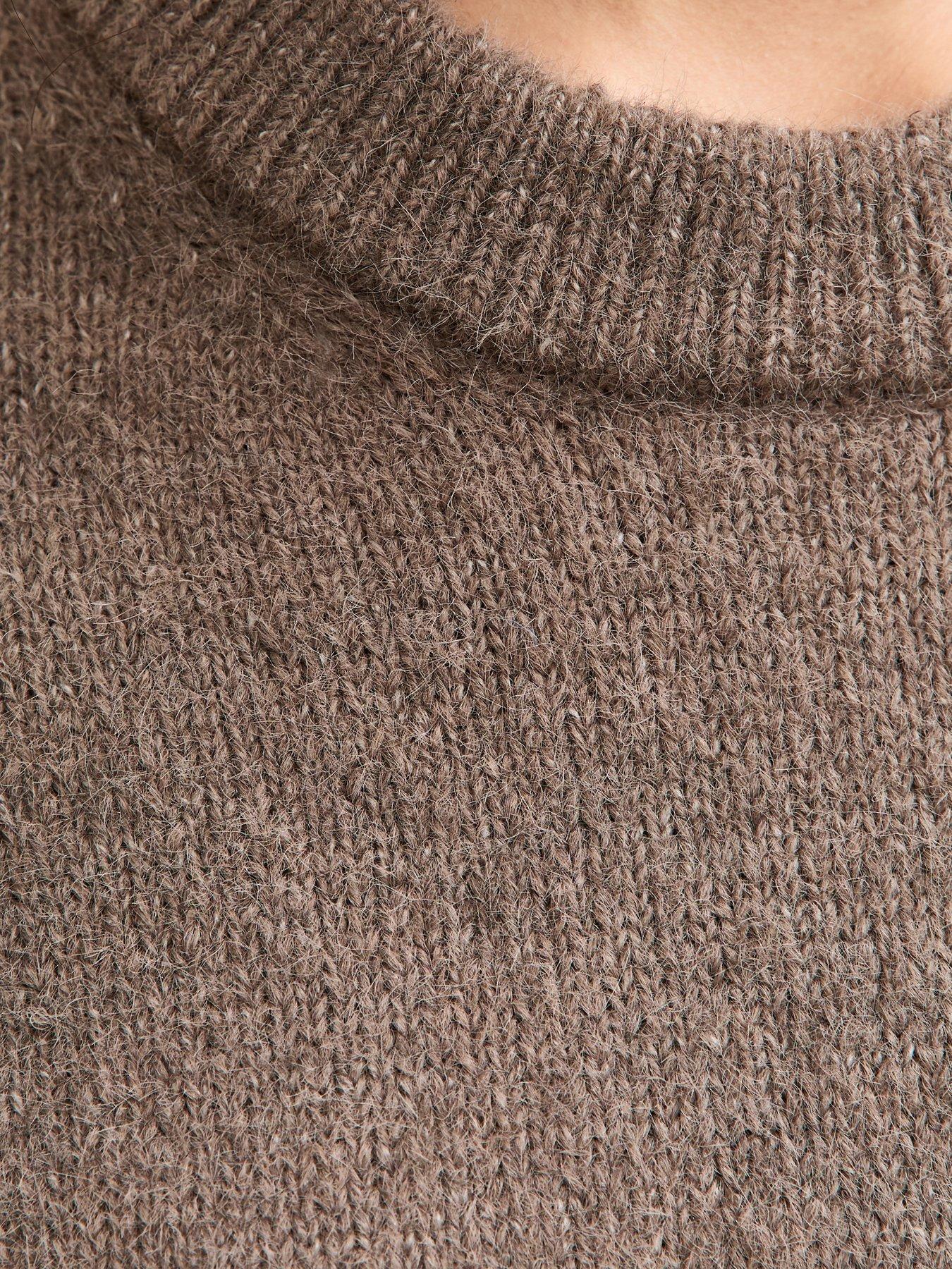 • Crew Neck Oversized Textured Knit Jumper - Mink by New Look