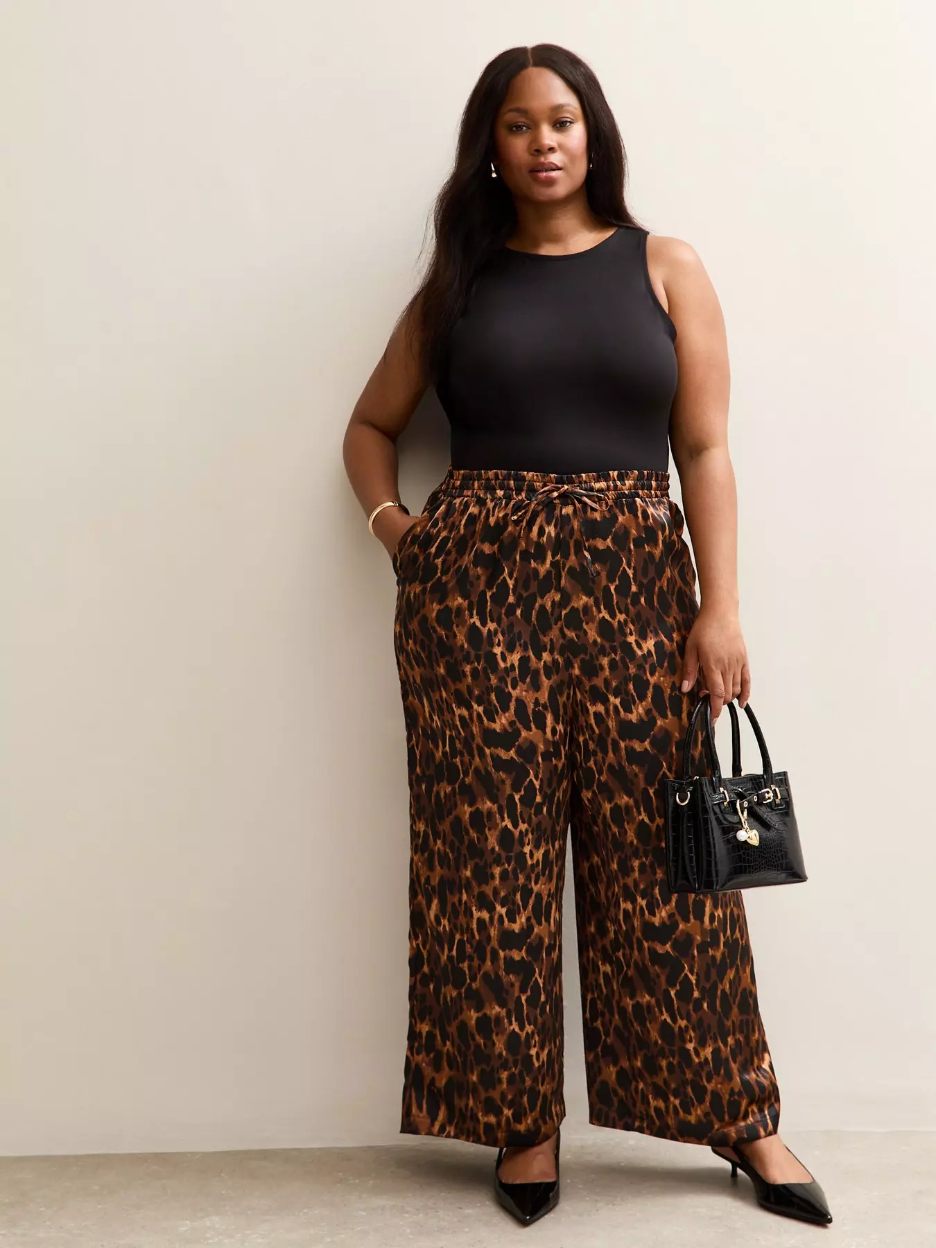 New Look Curves Leopard Print Satin Wide Leg Trousers