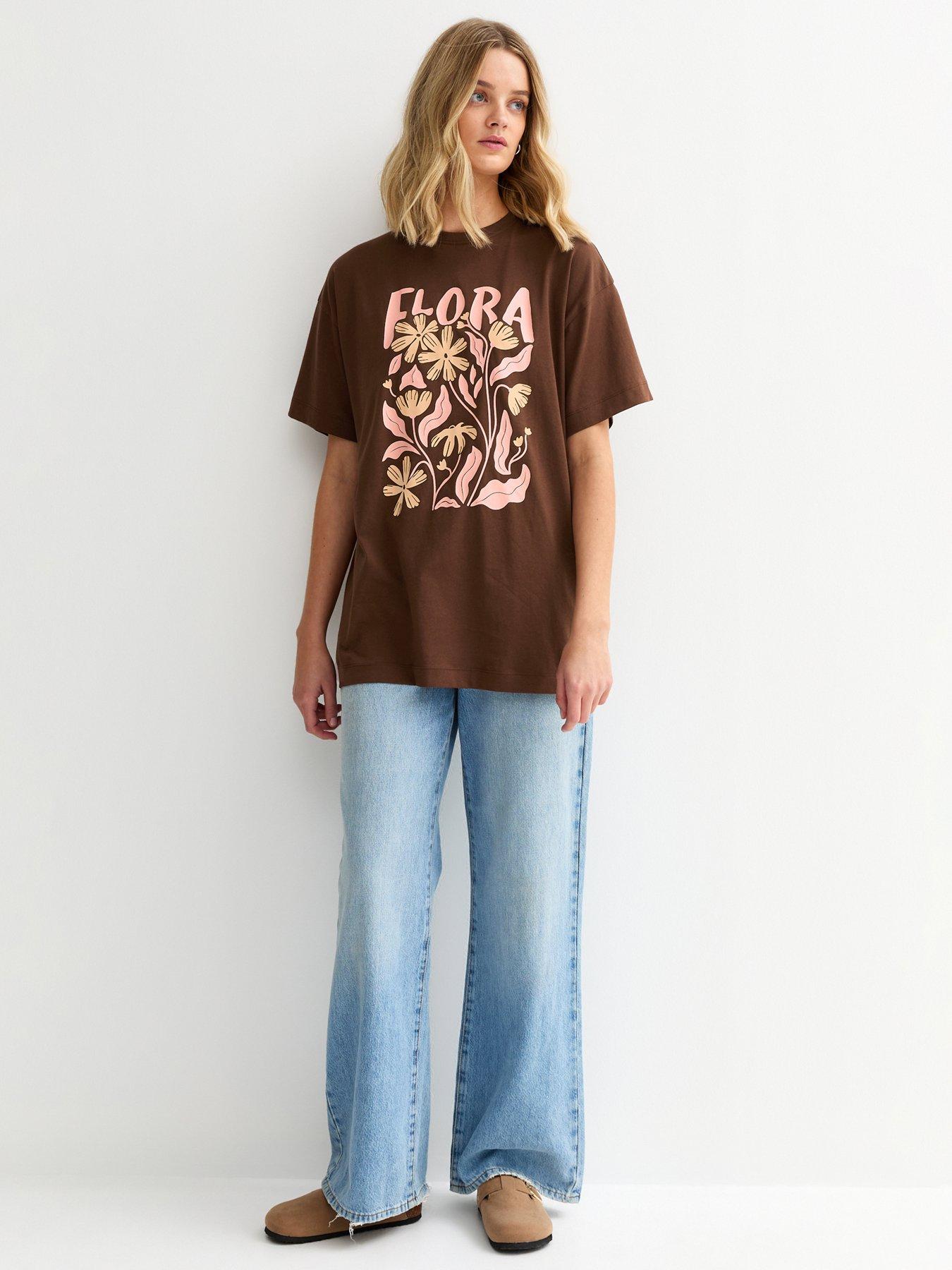 New Look Dark Brown Flora Print Oversized T-shirt