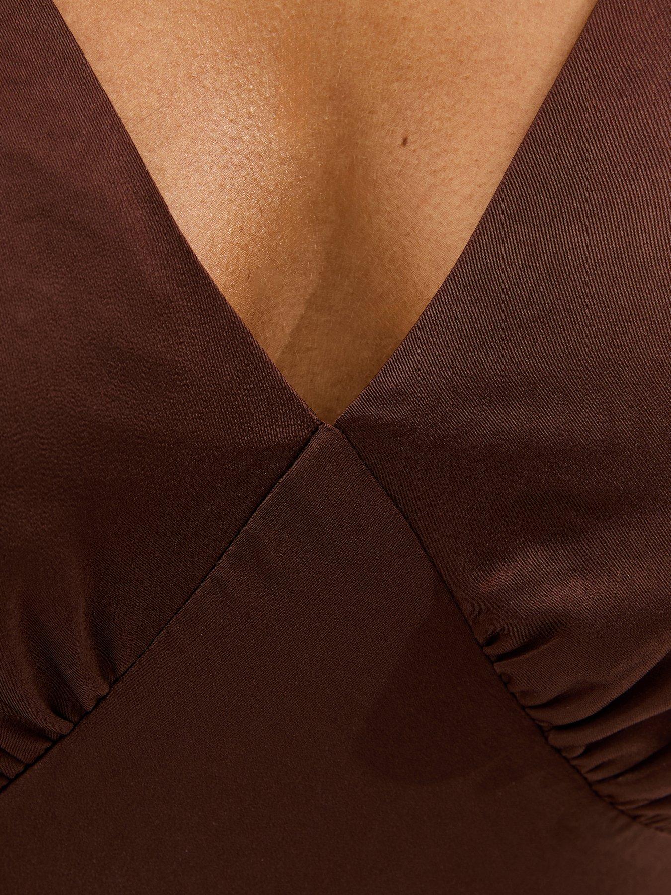 New Look Dark Brown Tie Shoulder Plunge Maxi Dress