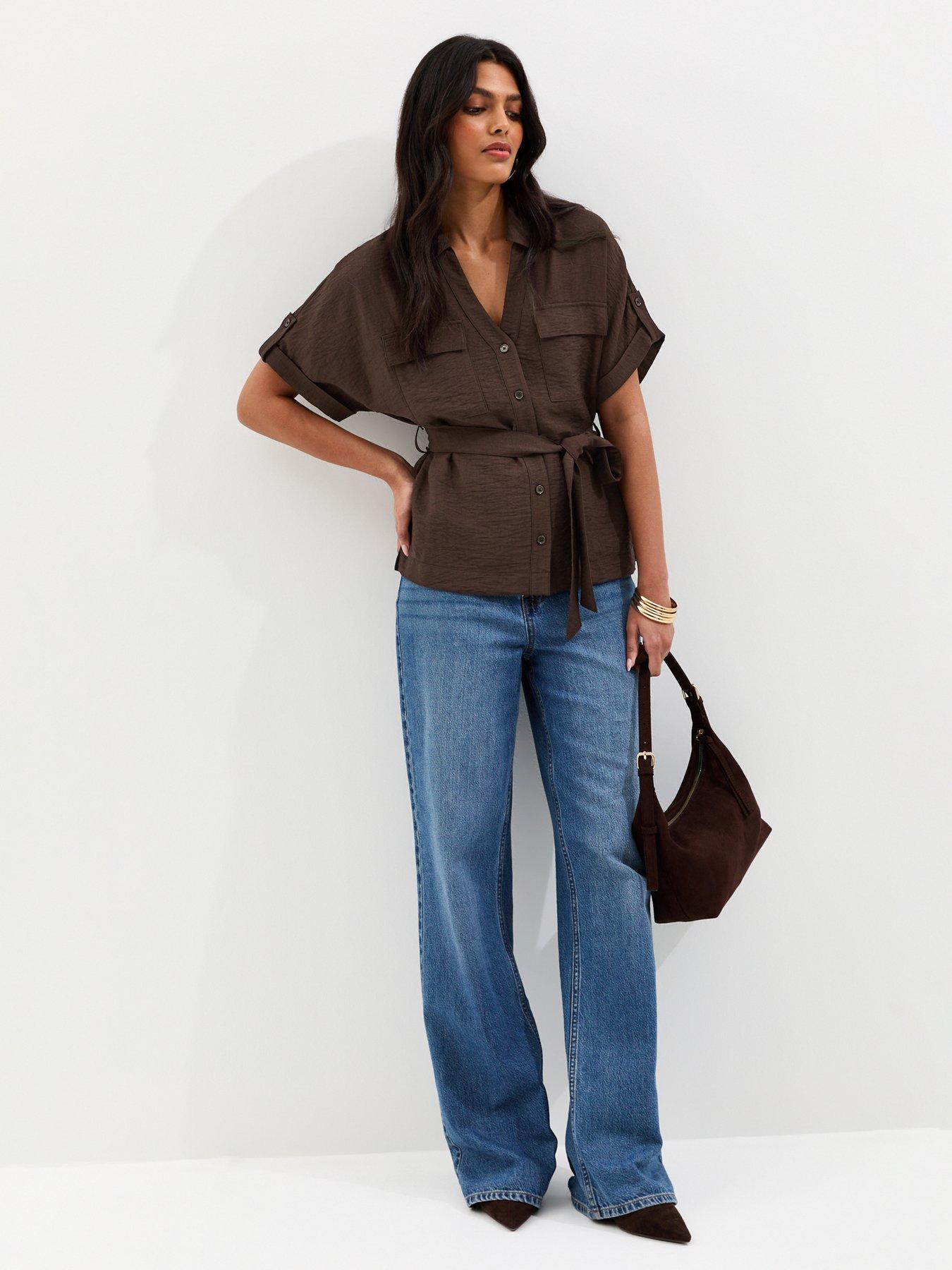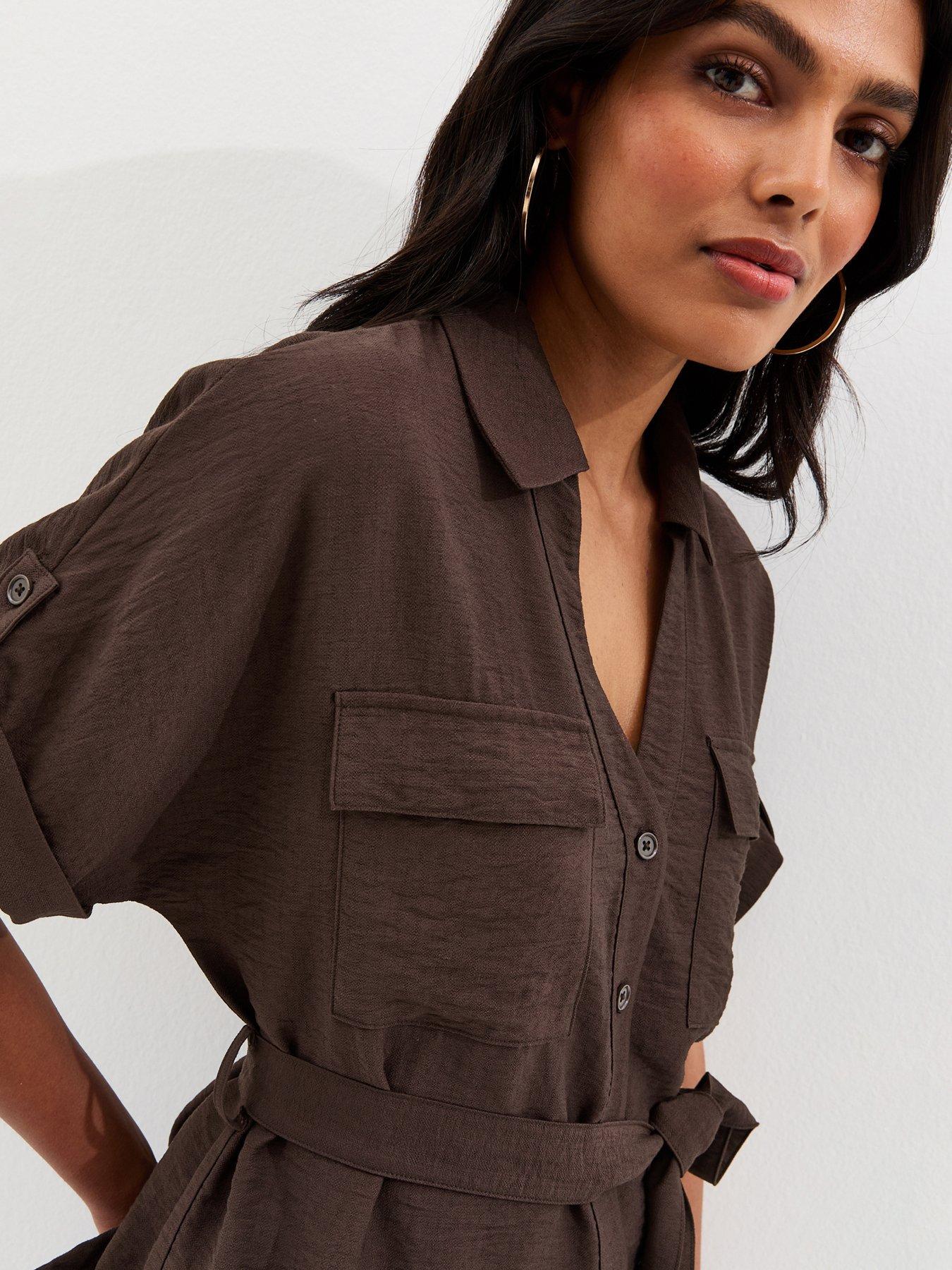 New Look Dark Brown Utility Belted Shirt