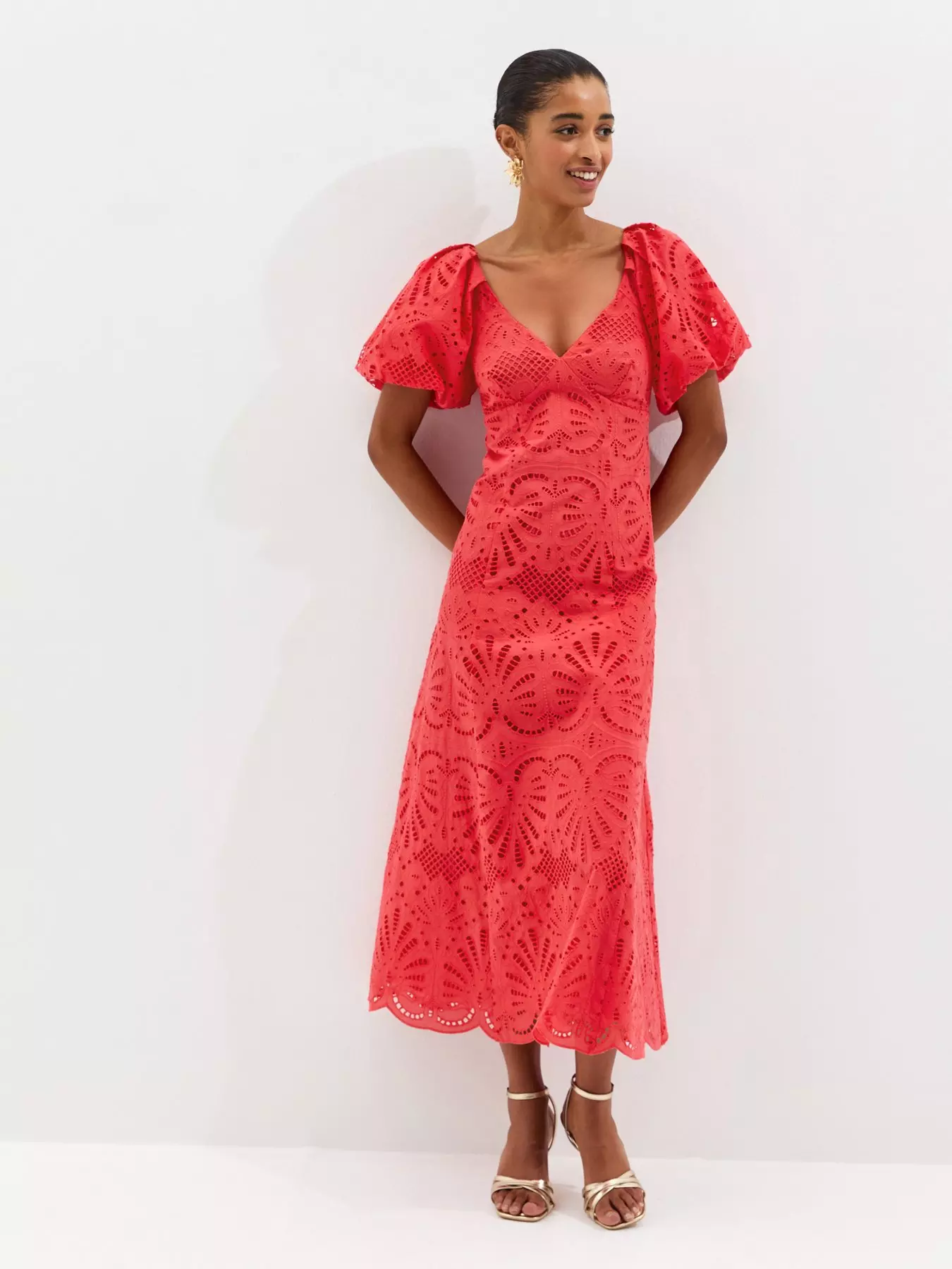 New Look Dark Coral Cutwork Tie Back Midi Dress
