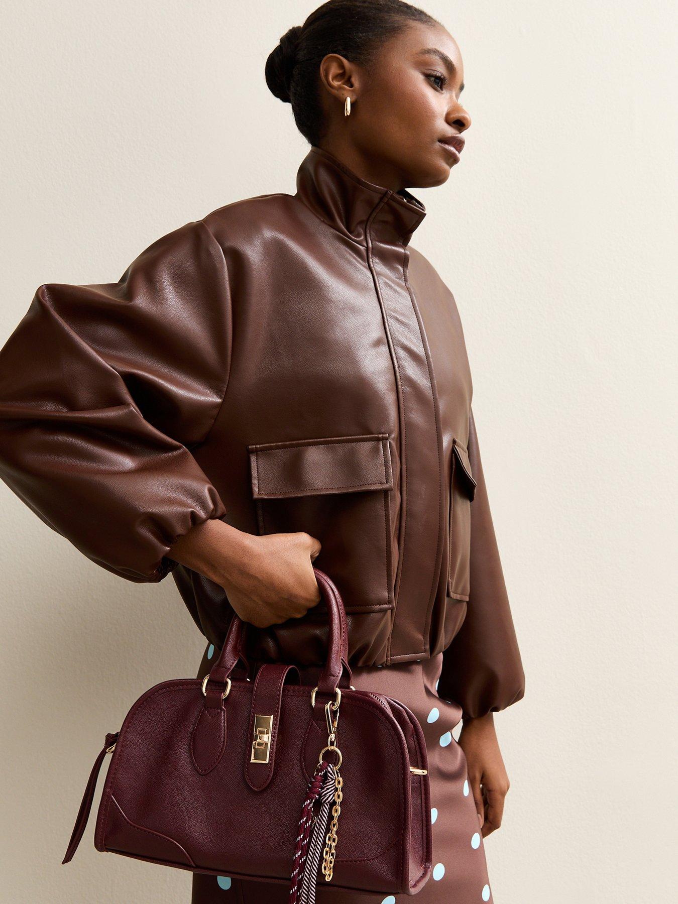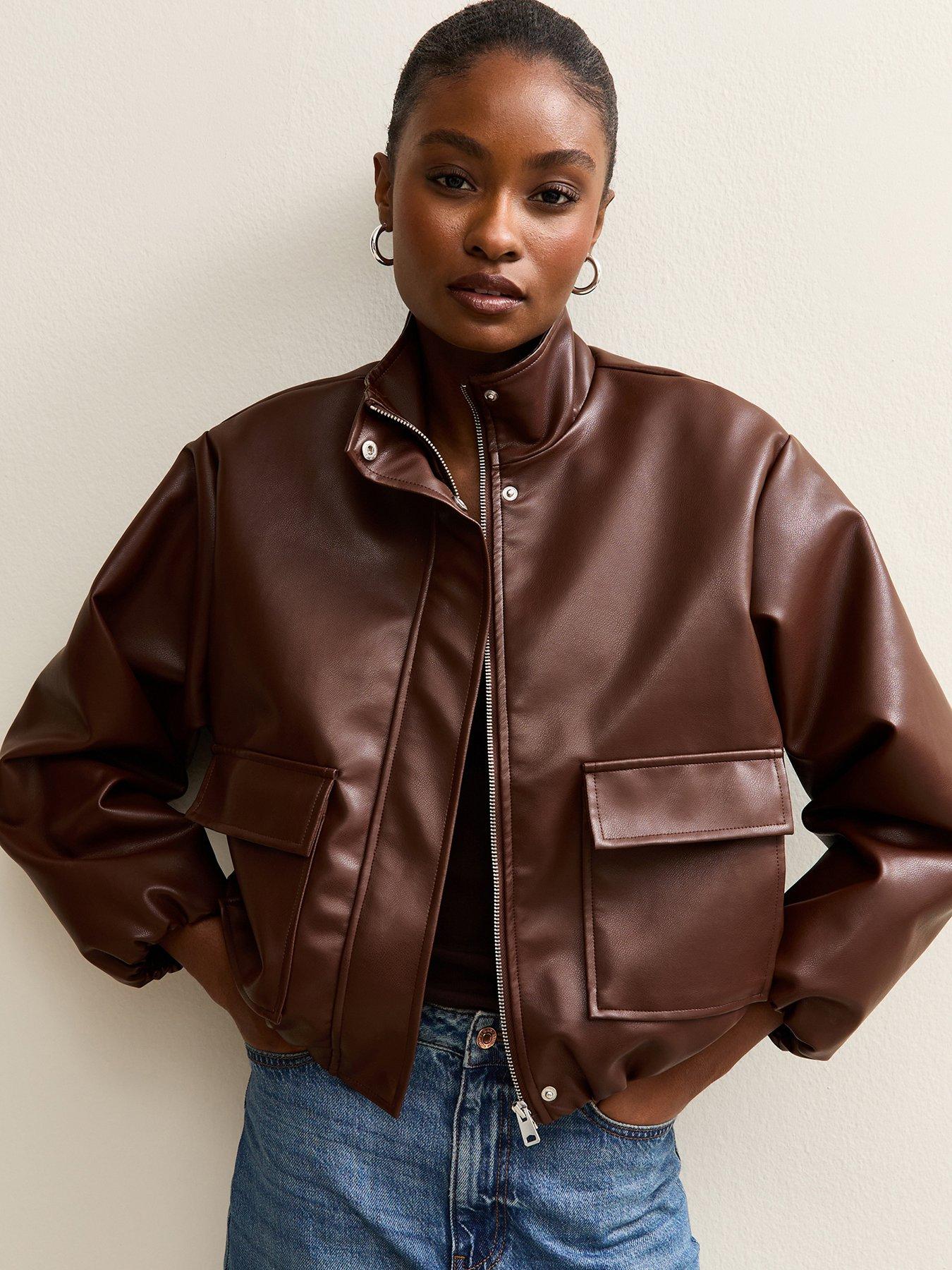 New Look Faux Leather Funnel Neck Bomber Jacket