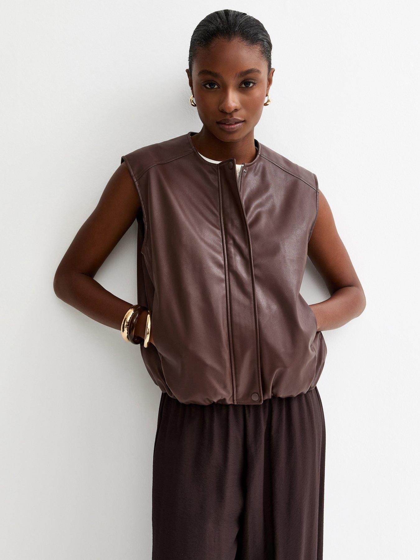 New Look Faux Leather Sleeveless Bubble Hem Jacket