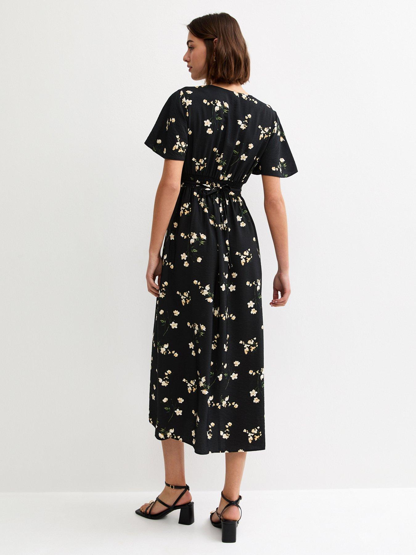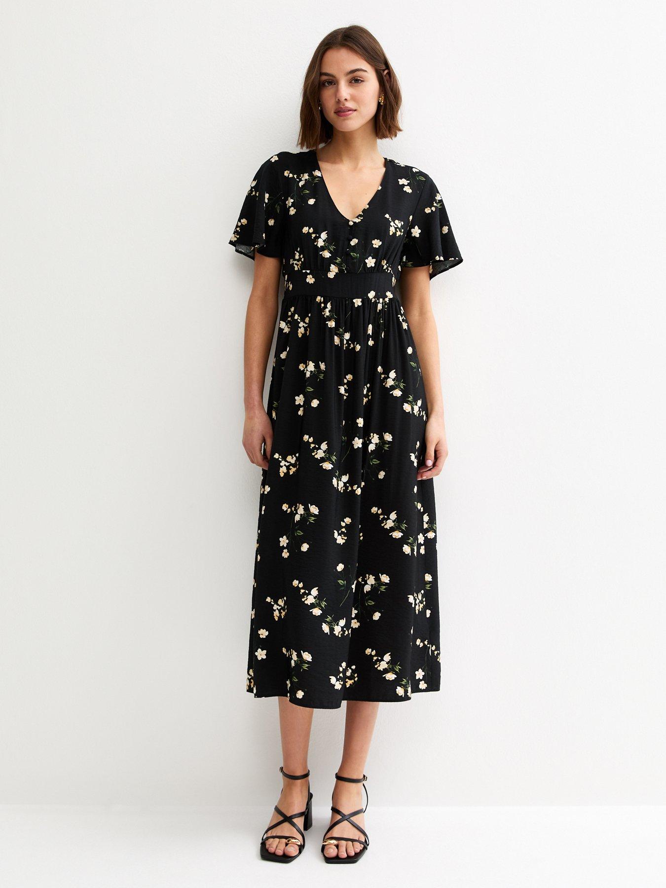 New Look Floral Flutter Sleeve Midi Dress