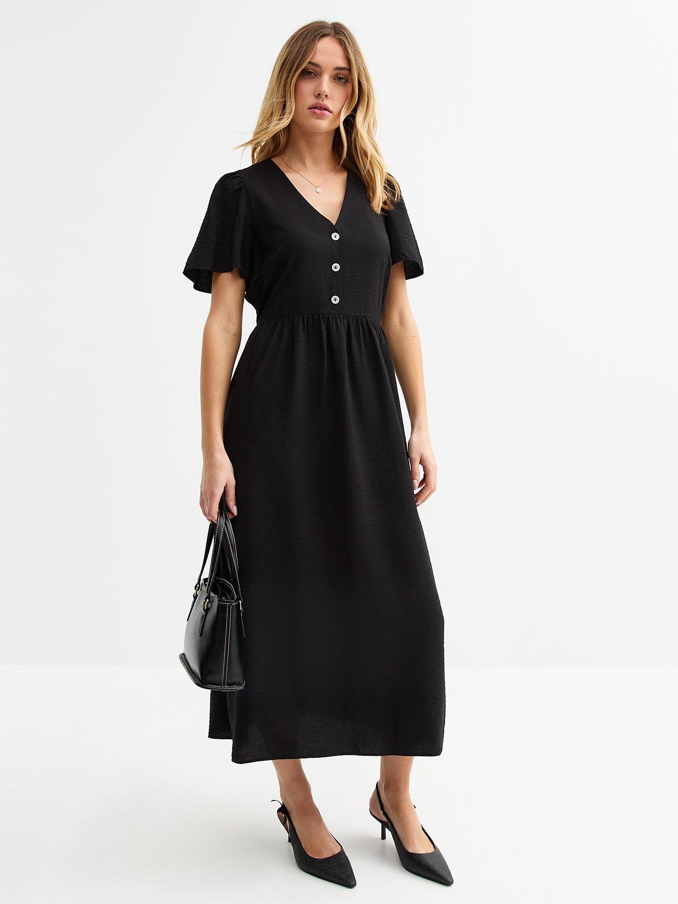 New Look Flutter Sleeve Button Front Midi Dress