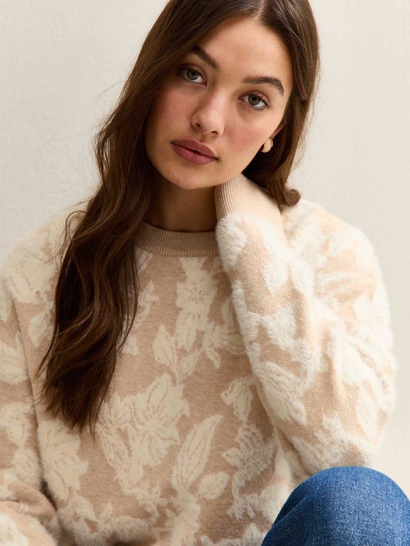 • Brushed Floral Crew Neck Jumper - Light Brown by New Look