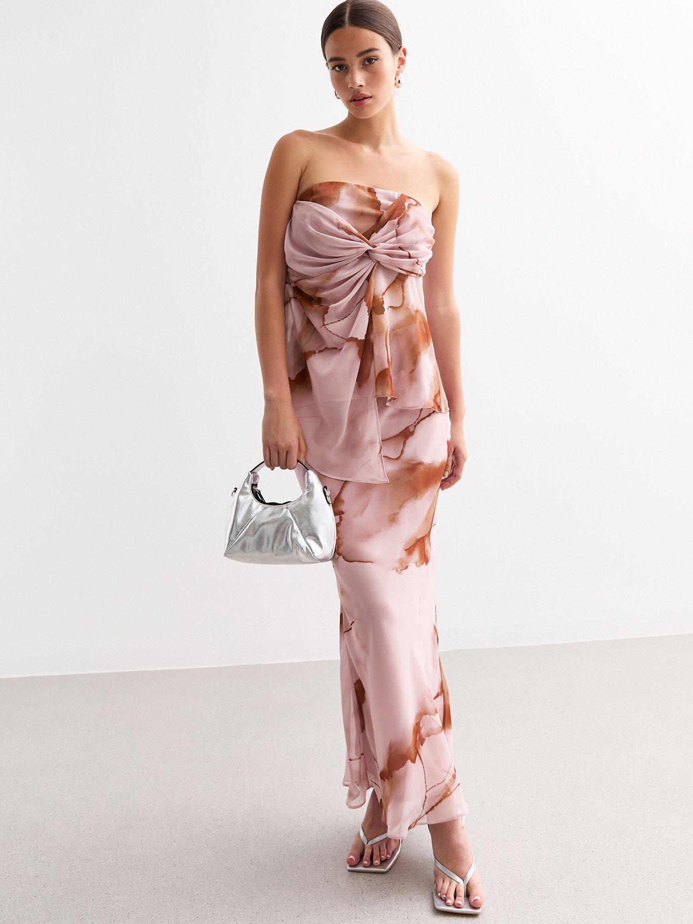 New Look Pink Marble Pattern Tie Front Bandeau Top