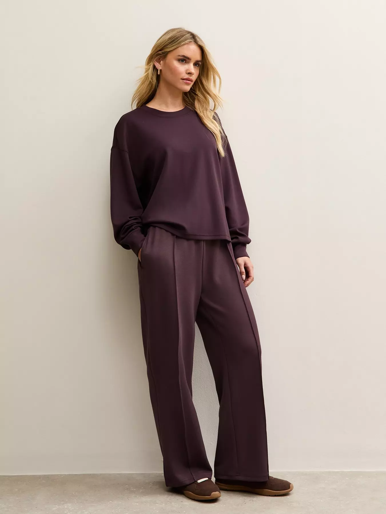 New LookPremium Elasticated Waist Wide Leg Joggers - Burgundy