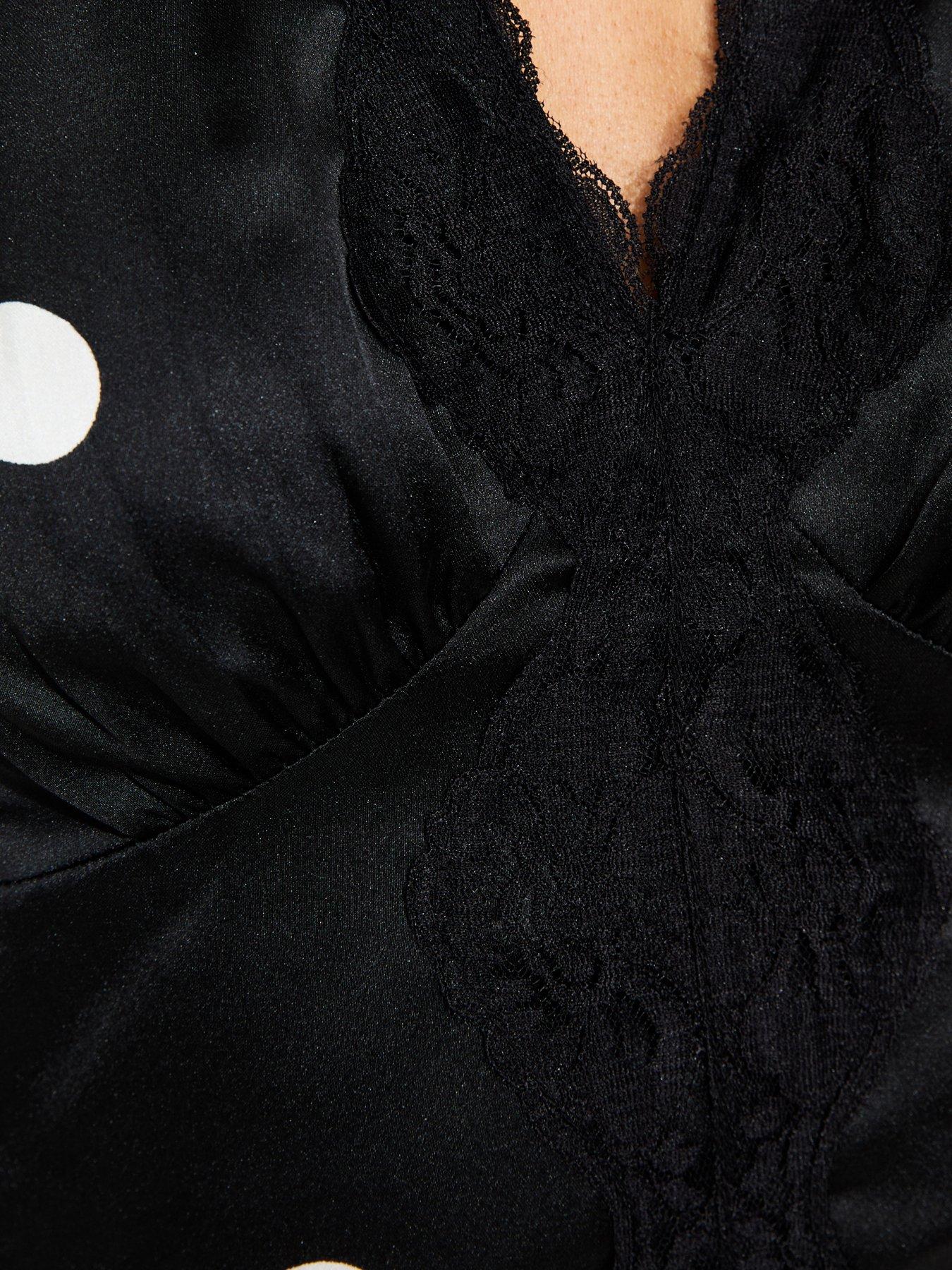 • Design: polka dot print, lace trim