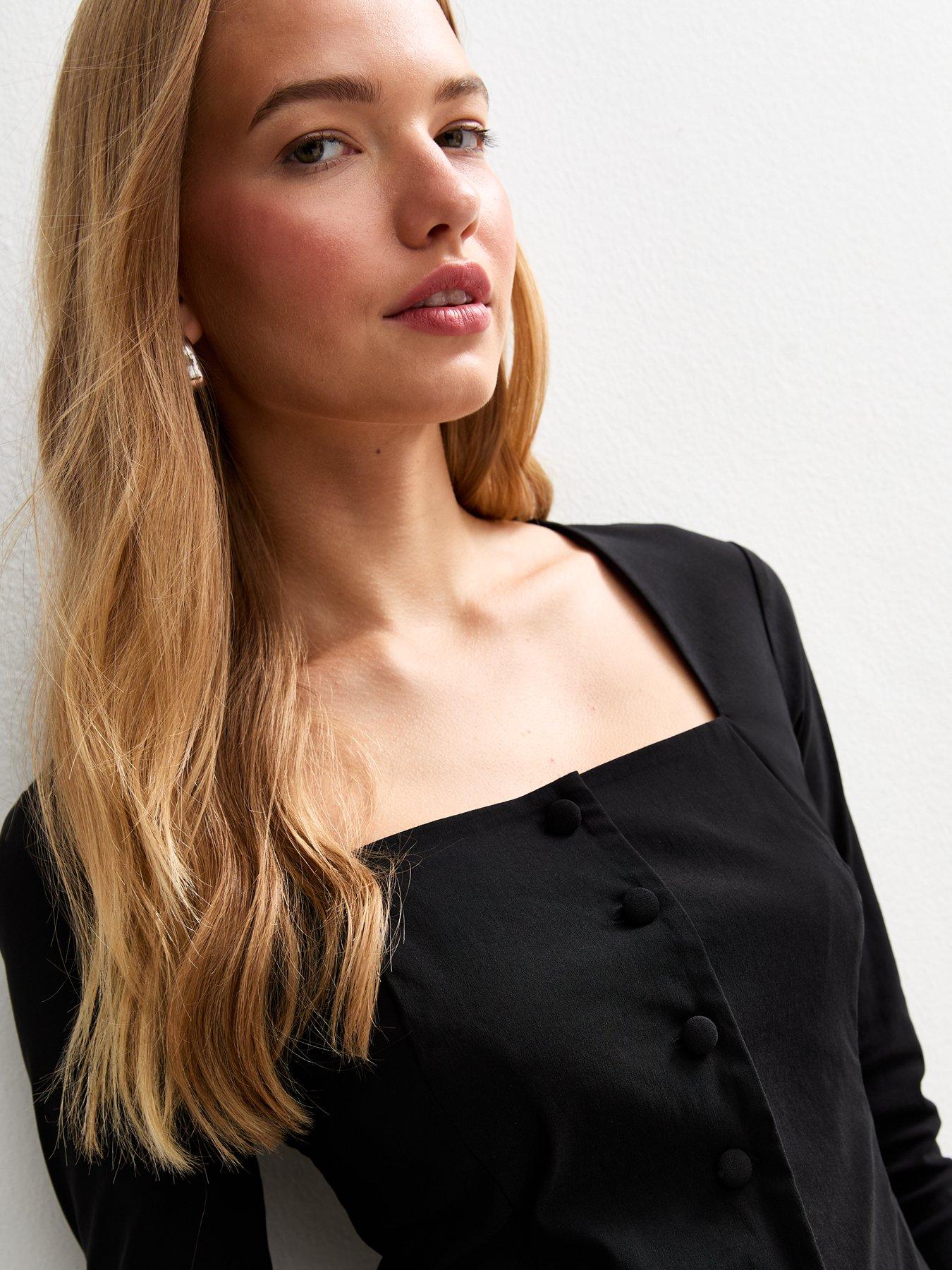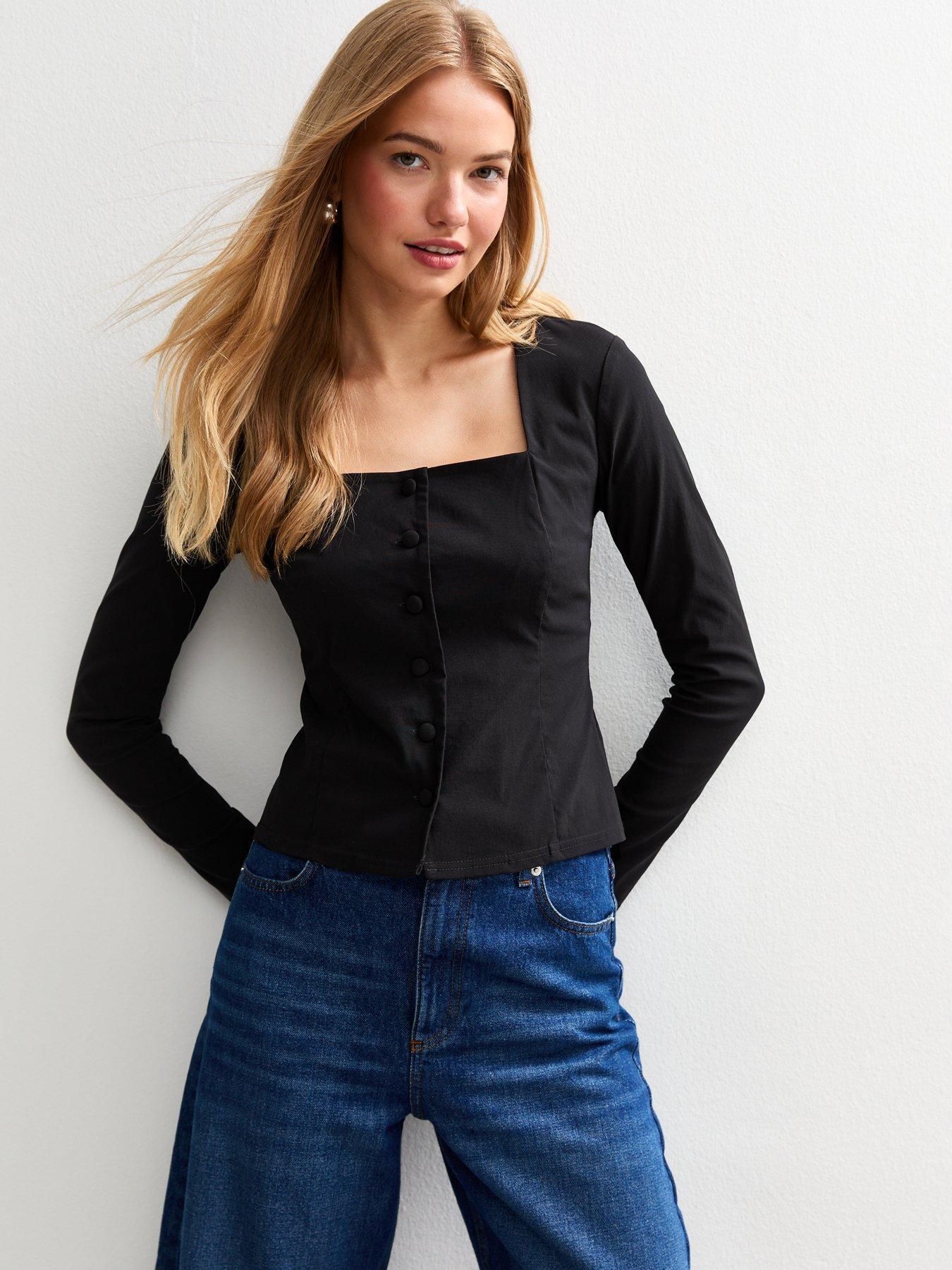 • Square Neck Button Up Long Sleeve Top by New Look