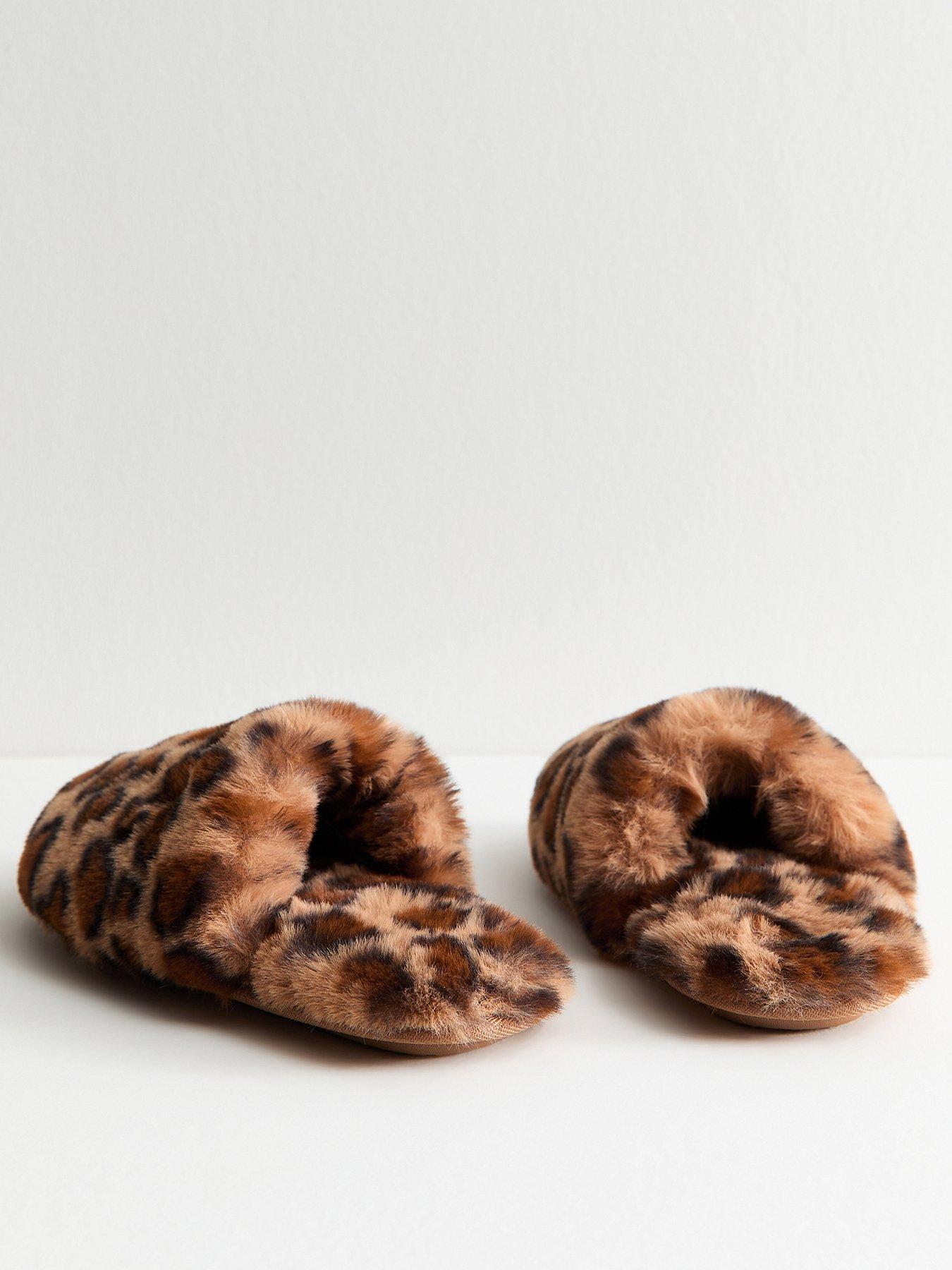 • Leopard Print Faux Fur Slippers by New Look