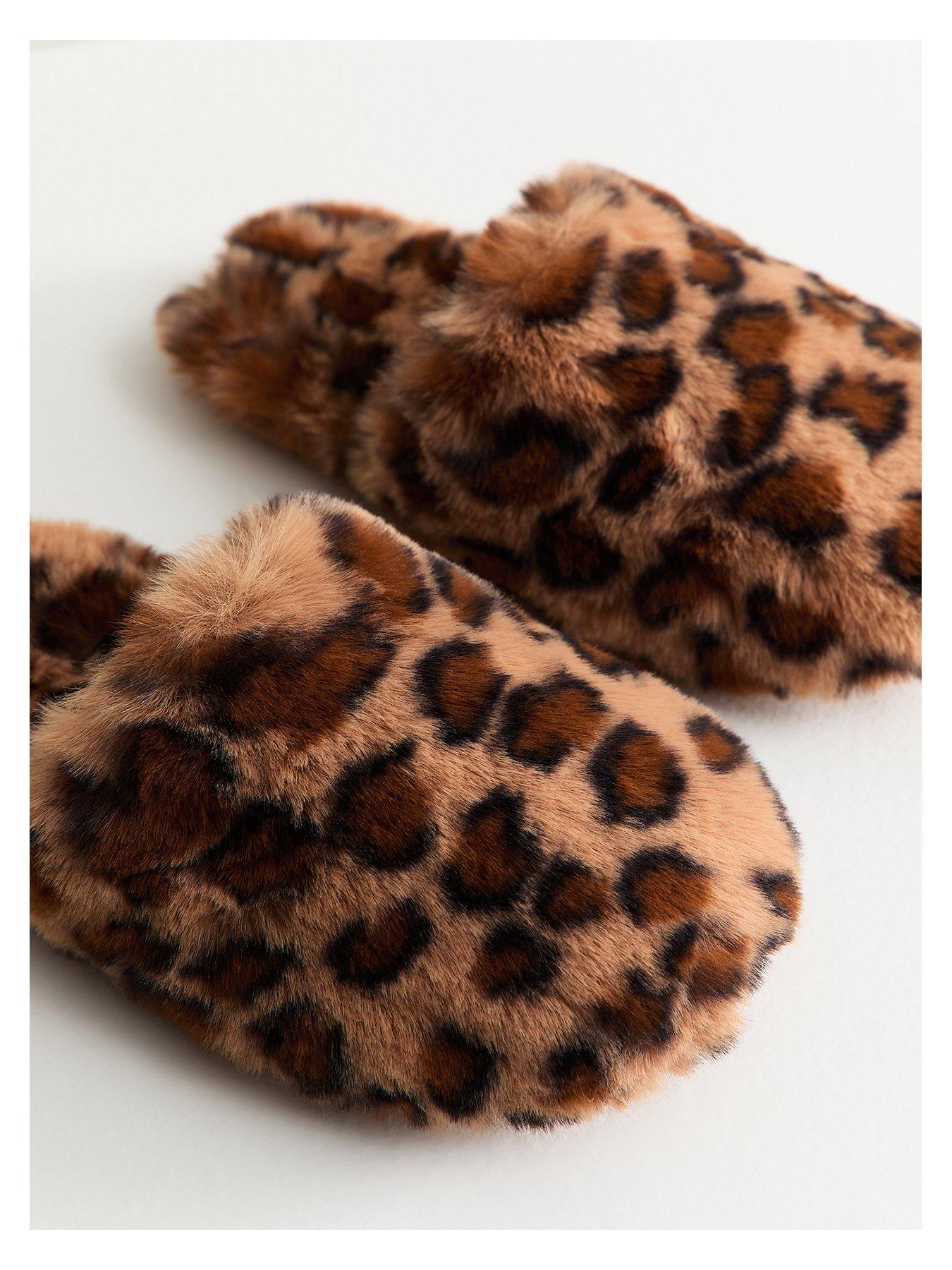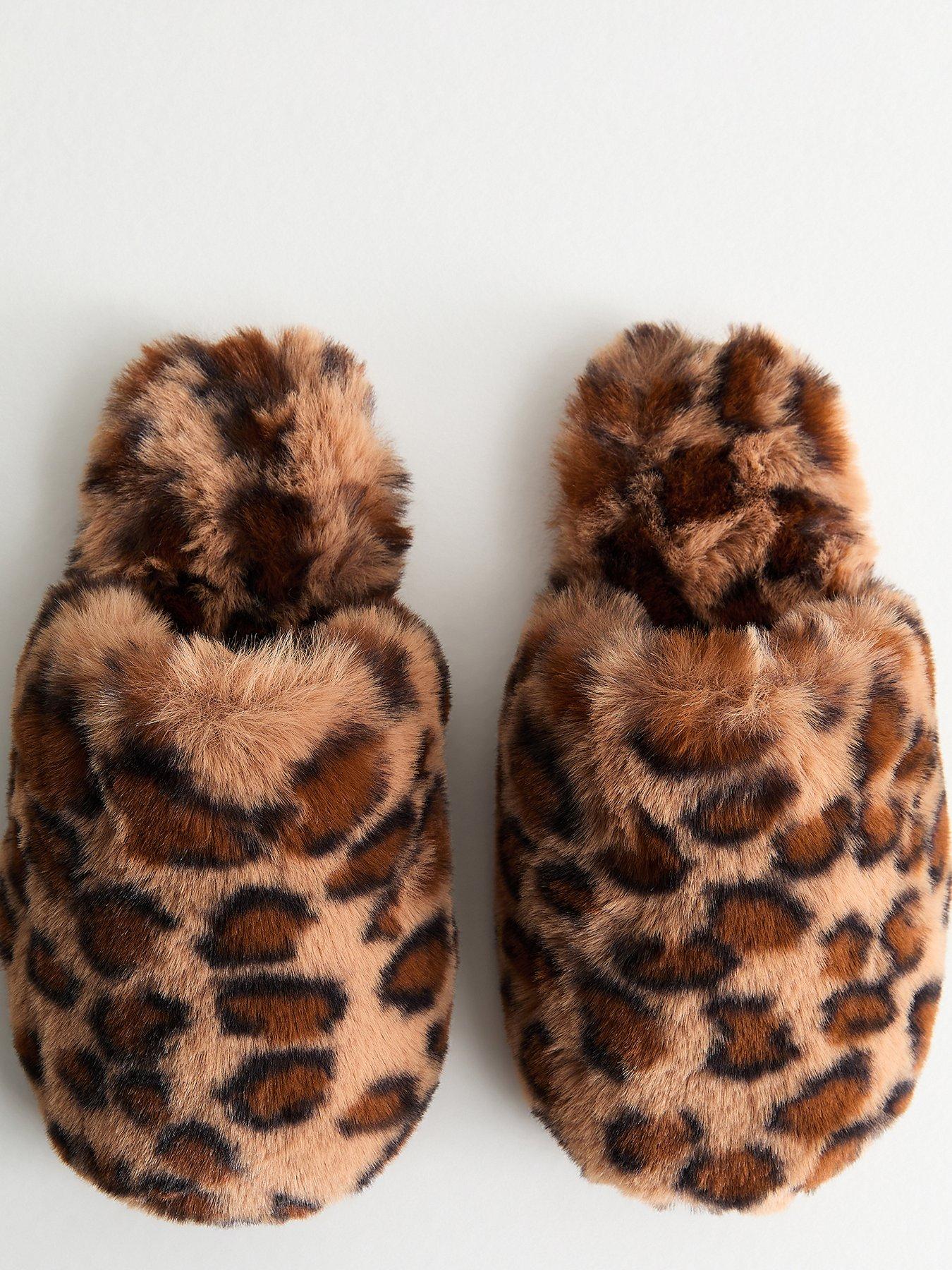 New Look Leopard Print Faux Fur Slippers