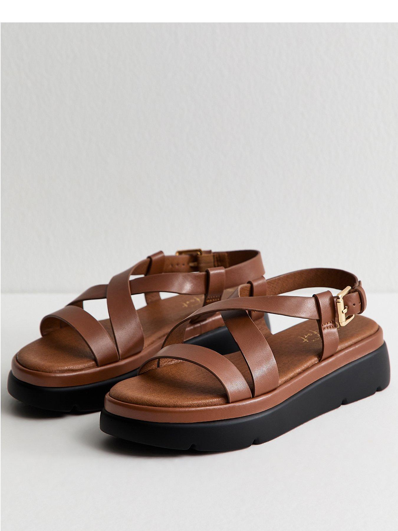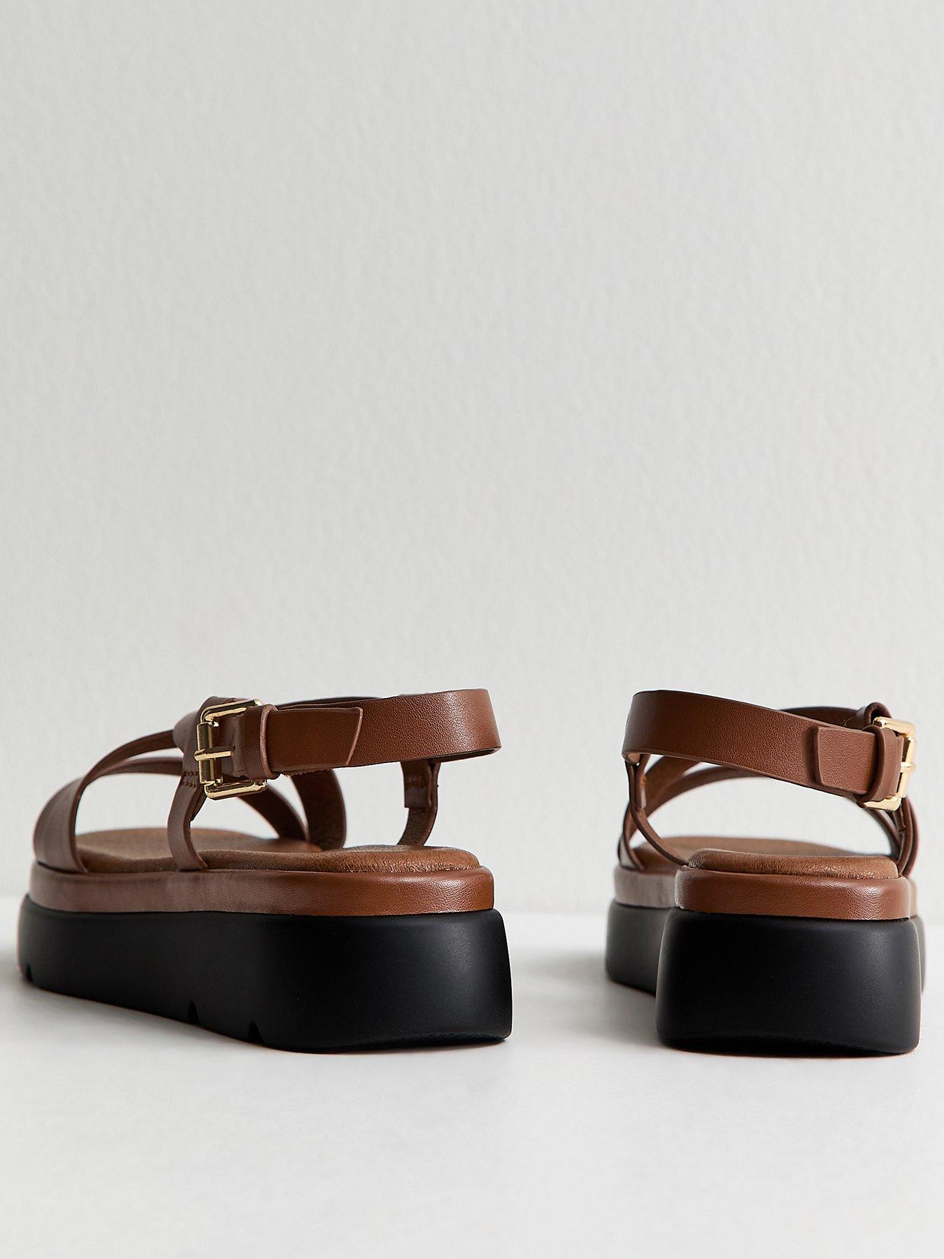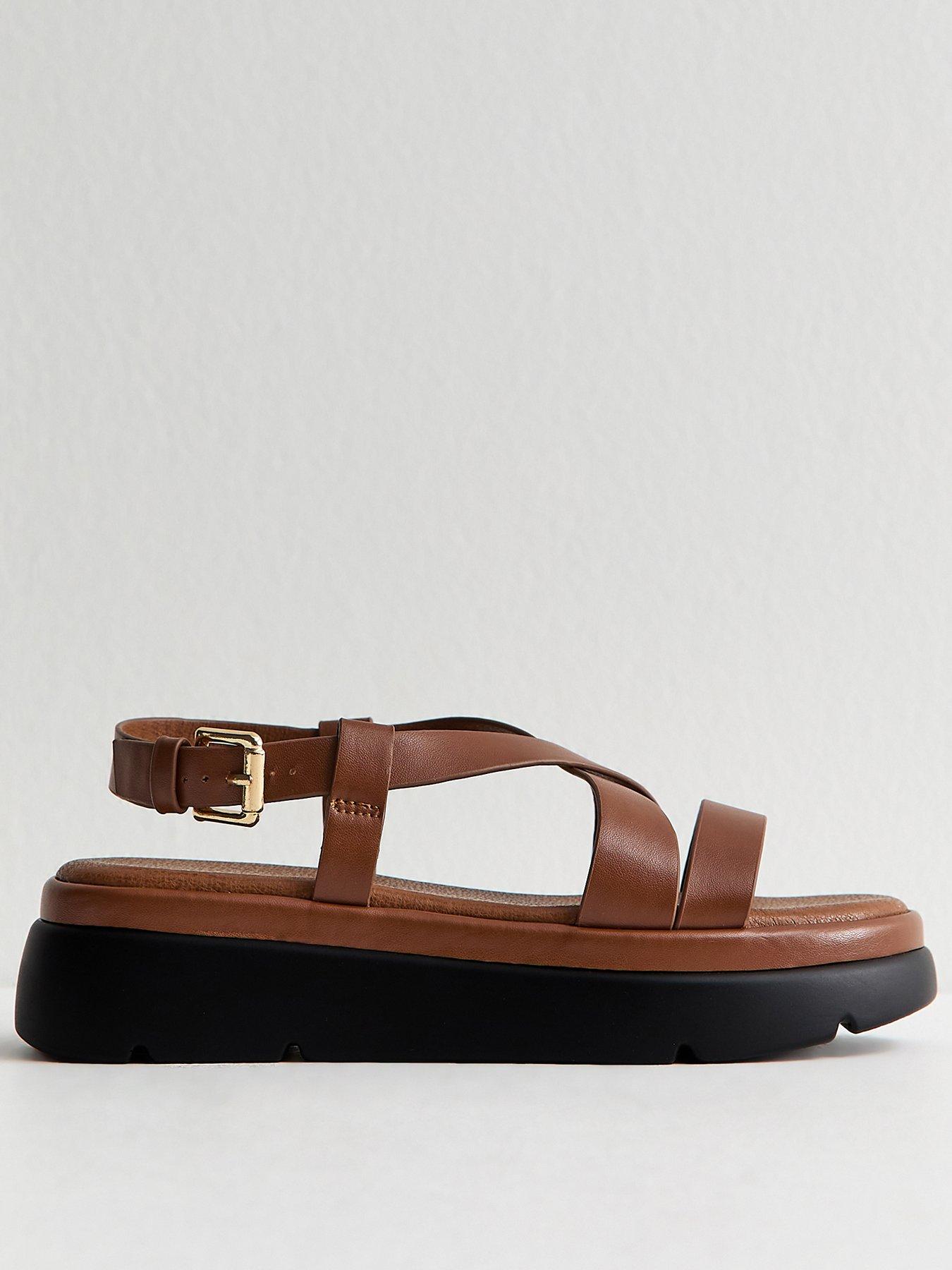 • Tan Faux Leather Crossover Strap Flatform Sandals by New Look