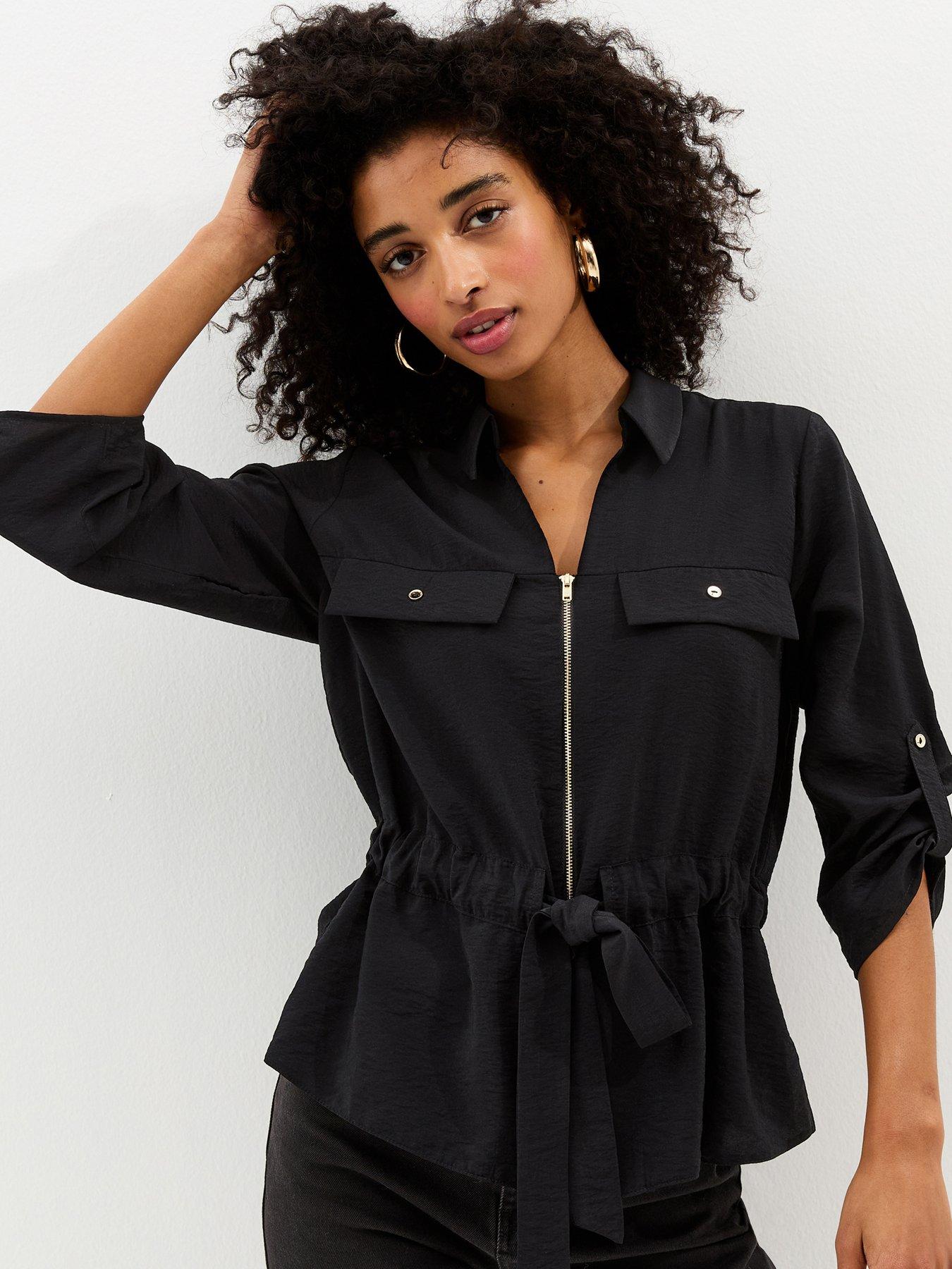 • Zip Up Cropped Sleeve Shirt by New Look