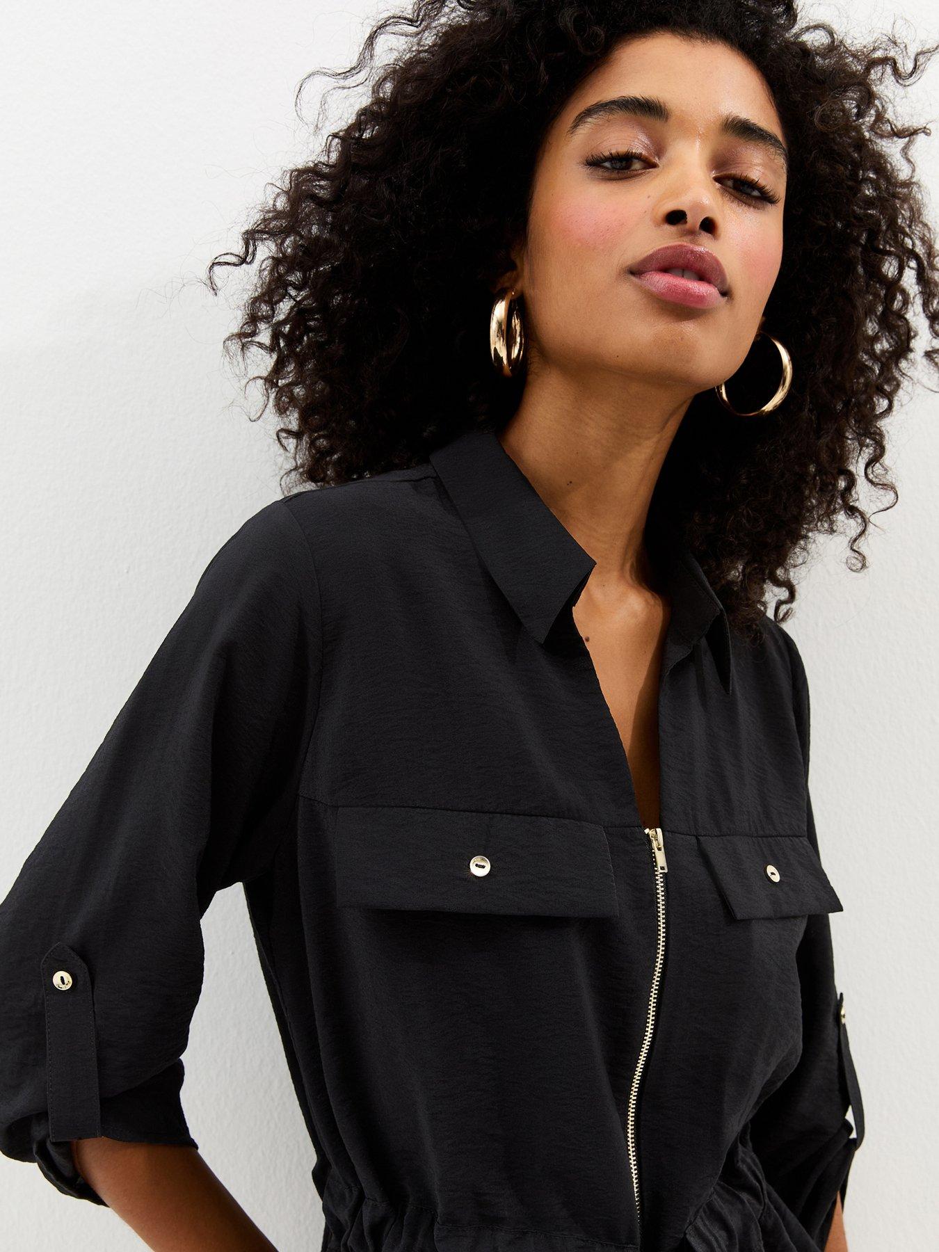 New Look Zip Up Cropped Sleeve Shirt