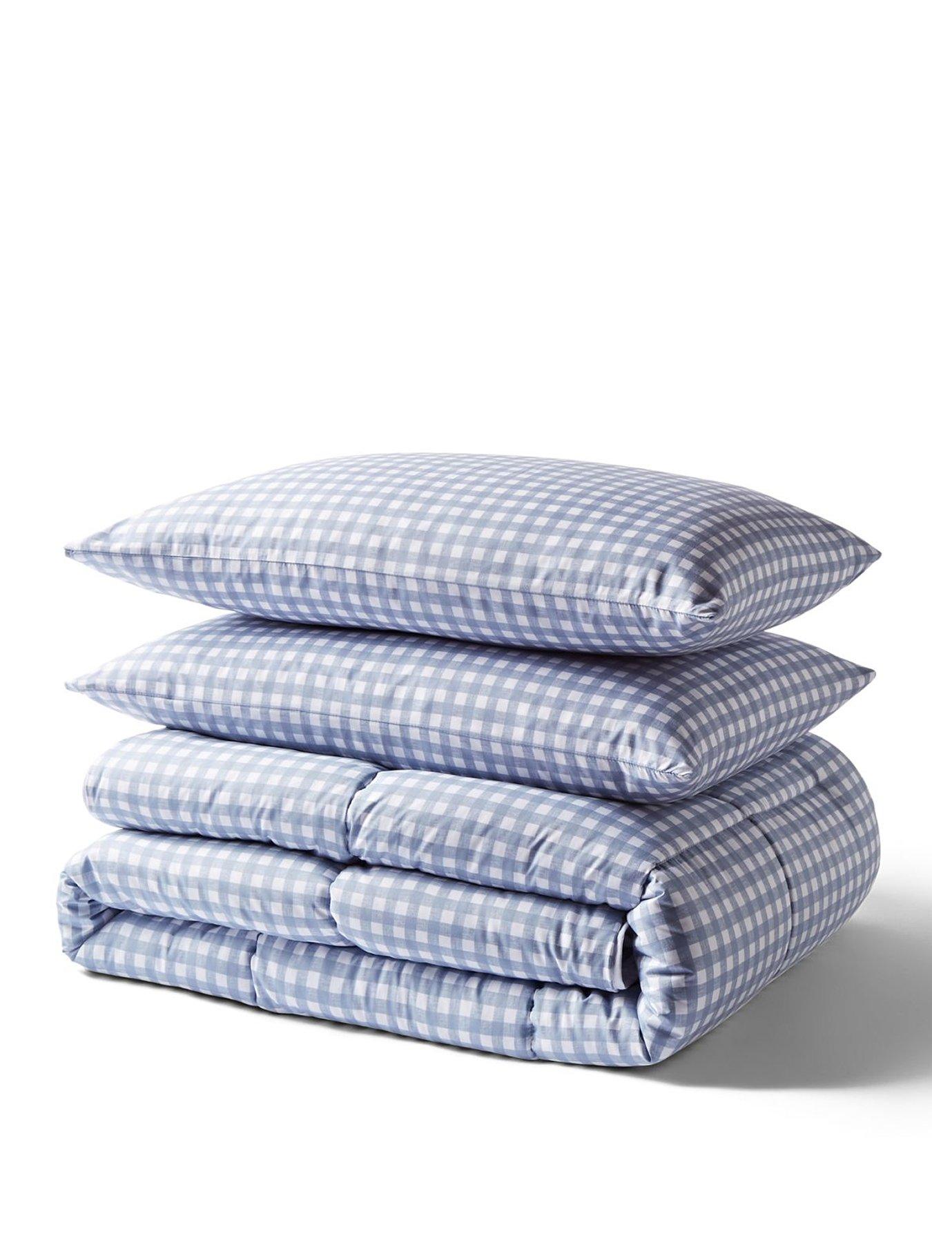 Night Lark Gingham Bound Set Gingham Blue 4.5 TogSay goodbye to duvet covers and hello to effortless comfort. The Night Lark Gingham Print Coverless Duvet Set is a ready-to-use bedding essential, designed for easy care and everyday convenience. Featuring a built-in, feather-soft peachskin microfibre cover, there's no need for a separate duvet cover - simply place it on the bed and enjoy instant comfort.Filled with lightweight, breathable fibres, this duvet is hypoallergenic, ultra-compressible, and designed to stay plump wash after wash. It's fully machine washable at home and quick drying, making it ideal for busy households and everyday use. Finished with a Gingham print design, this duvet adds understated style to any bedroom. A hand-sewn bound edge enhances comfort, while co-ordinating pillowcase(s) are included for a complete look - one for Single and two for Double and King sizes. It also comes with a reusable duffle bag for convenient storage. Key Features Built-in cover - no duvet cover required 4.5 Tog - ideal for spring, summer, and hot sleepers Machine washable and quick drying Hypoallergenic and shape-retaining Includes matching pillowcase(s) and reusable storage bag Tufted dot design for a modern, stylish finish Effortless comfort meets easy care - the Night Lark Gingham Print Coverless Duvet Set is designed to make bedtime simpler and better. Product Details Design Type: Gingham Check Outer Material: 100% Super Soft Microfibre Filling Material: 100% Polyester