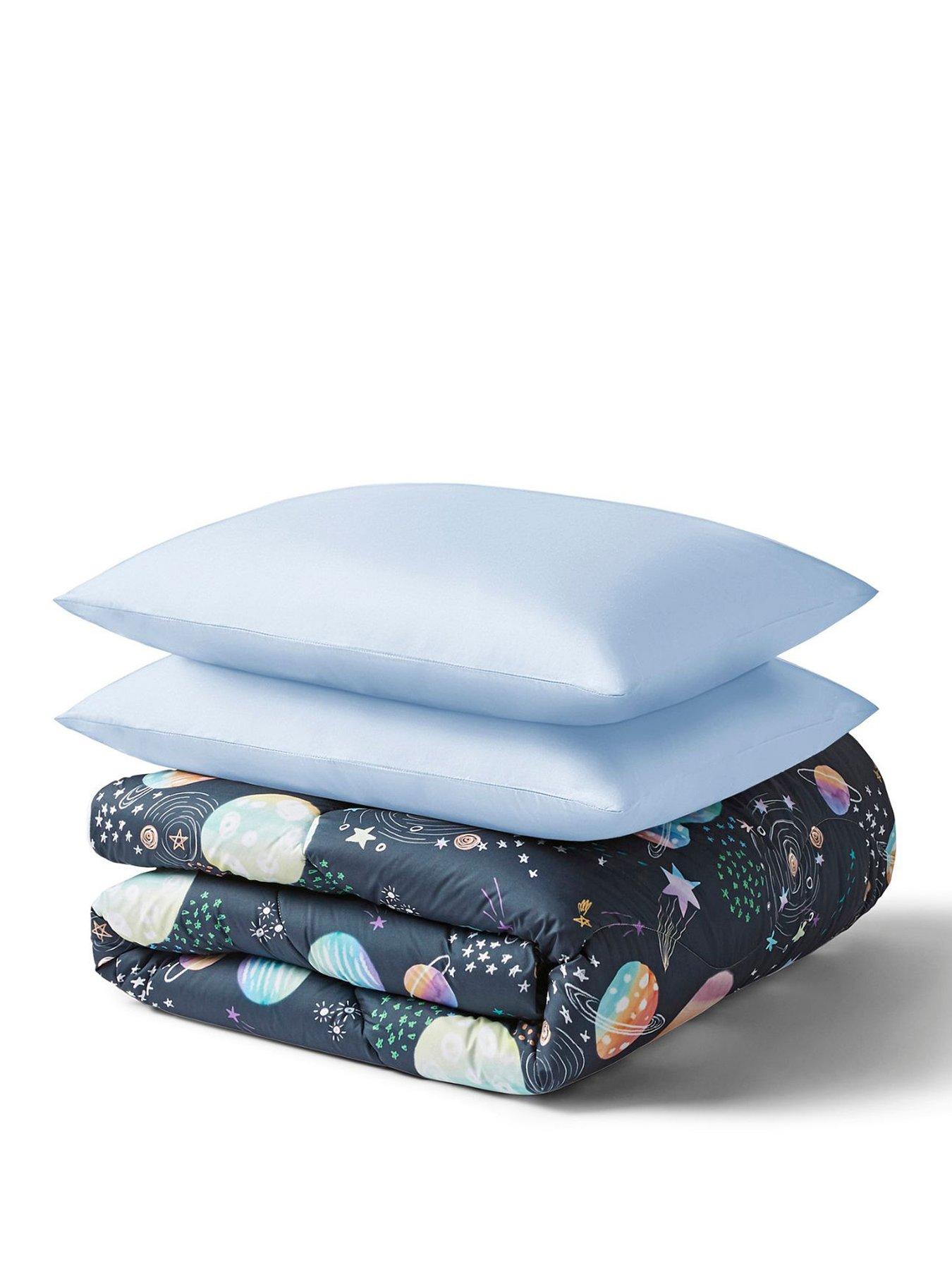 Night Lark Junior Set Space Adventure 4.5 TogMake bedtime easier and brighter with the Night Lark Junior Coverless Duvet Set. Designed with little ones in mind, this all-in-one duvet is ideal for cosy nights and quick clean-ups - no separate duvet cover needed. Whether it's for night-time accidents or everyday mess, simply pop the whole duvet in the washing machine and enjoy the convenience of a fast 90-minute drying time - line dry or tumble dry, it's ready in no time.Lightweight yet warm, it's filled with ultra-soft Smartfil fibres. These advanced fibres are hypoallergenic, shape-retaining, and stay feeling fresh wash after wash. The soft-touch peachskin microfibre cover is gentle on skin, and the 4.5 Tog rating offers the perfect warmth for warmer nights. Key Features: Coverless design - no duvet cover needed Quick drying in just 90 minutes Lightweight with a 4.5 Tog rating - ideal for cooler months Hypoallergenic and machine washable at 40°C Soft-touch peachskin microfibre cover Comes in a reusable duffle bag - perfect for storage Material Composition: Cover: 100% polyester microfibre. Filling: 100% polyester Available Sizes: Single (135 x 200 cm) - includes 1 pillowcase (48 x 74 cm) Double (200 x 200 cm) - includes 2 pillowcases (48 x 74 cm each) For happy nights and even happier mornings, explore the full Night Lark Junior range.