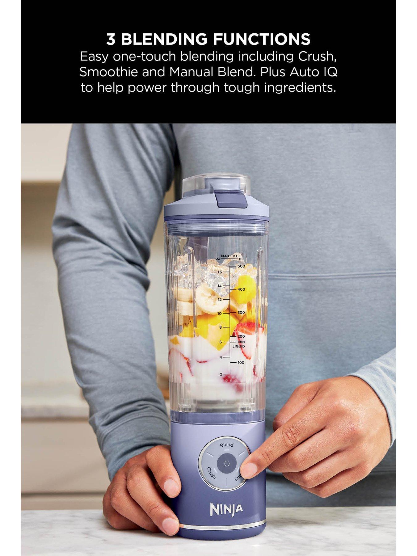 NINJA Blast Cordless Portable Blender - LavenderMeet Ninja Blast Max, Ninja's most powerful cordless blender. Experience ice-crushing power that can blast through ice, fresh and frozen ingredients, with a Twist & Go cup to easily enjoy your creation on-the-move.Two automated Auto-iQ programmes pulse and process ingredients in seconds. And its on-trend Lavender finish means you can blend in style. Portable blending power: Driven by a powerful motor, the sharp CrushBlade blasts through though ingredients, thanks to PowerBlast Technology. Transform solid ice into shaved ice for frozen drinks. Or turn fresh and frozen fruit, vegetables and herbs into smoothies, dips, curry pastes and more. Auto-iQ Technology: Ninja's Auto-iQ Technology uses pulse and pause patterns and a sharp CrushBlade to Blast through tough ingredients. Take control with a 30-second Manual Blend mode or let the blender do the hard work for you with automatic Crush and Smoothie modes. 570ml* removable blending cup with leak-proof lid: Twist the cup off the motor base to take your creations on-the-go. The leak-proof lid ensures there are no spills. Includes a carry handle and sip spout for easy carrying, drinking and pouring. Designed for portability: Slim and lightweight enough to slip into a backpack, work or gym bag. Its small size also makes it ideal for small kitchens. Long-lasting rechargeable battery: When fully charged, Blast Max delivers up to 25 blends. Easy to clean: The blend cup and sip lid are dishwasher safe and can be hand washed in warm, soapy water. Included in the box: Blast Max motor base, 570ml* blending cup with built-in CrushBlade, leak-proof sip lid, charging cable and Recipe Guide. (*490ml max fill capacity.)
