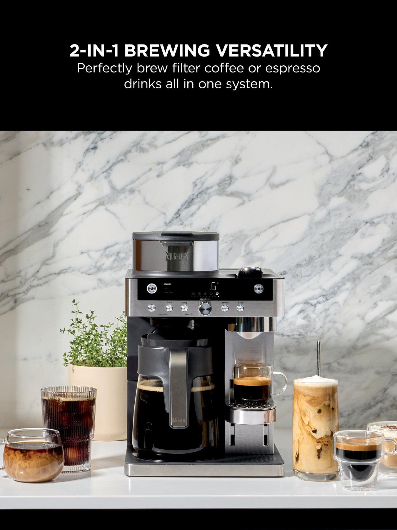 Introducing the Ninja Prestige DualBrew System, the 2-in-1 machine that can brew coffee capsules and filter coffee. Select from 10 drink sizes ranging from a single cup to travel mug when you brew filter coffee, plus 7 brew styles.