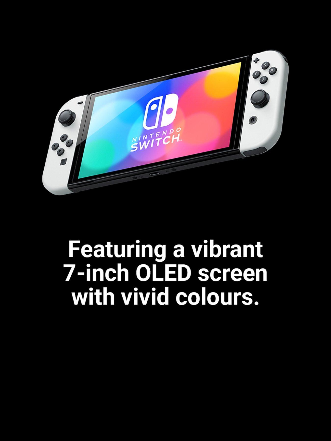 Nintendo Switch OLED White Console & Pokemon Legends Z-AFeatures a vibrant 7-inch OLED screen, a wide adjustable stand, a dock with a wired LAN port, 64GB of internal storage, and enhanced audio. Play anytime, anywhere, with anyone.Pick it up and play with the Joy-Con controllers attached. The large screen's vivid colours and high contrast deliver a rich handheld and tabletop gaming experience, bringing games to life whether you're racing at top speed or squaring off against enemies. Flip out the stand and hand a controller to another player to share the screen and enjoy competitive or co-operative multiplayer, anytime and anywhere. Nintendo Switch OLED's wide adjustable stand can be set to your preferred viewing angle for comfortable gameplay in tabletop mode. Gather around a big screen and enjoy gaming with a crowd. Dock your Nintendo Switch to enjoy HD gaming on your TV. The dock included with Nintendo Switch OLED console features two USB ports, an HDMI port for connecting to a TV, and a new wired LAN port, allowing for more stable online play when playing in TV mode. Save games to your system with 64 GB of internal storage & Enjoy enhanced audio from the system's onboard speakers. Pokémon Legends: Z-A for Nintendo Switch and receive 5 Mega Evolution stickers, while stocks last. An ambitious new adventure set in Lumiose City awaits in Pokémon Legends: Z-A. Explore the city, unravel its secrets and battle Pokémon like never before! Redemption instructions: